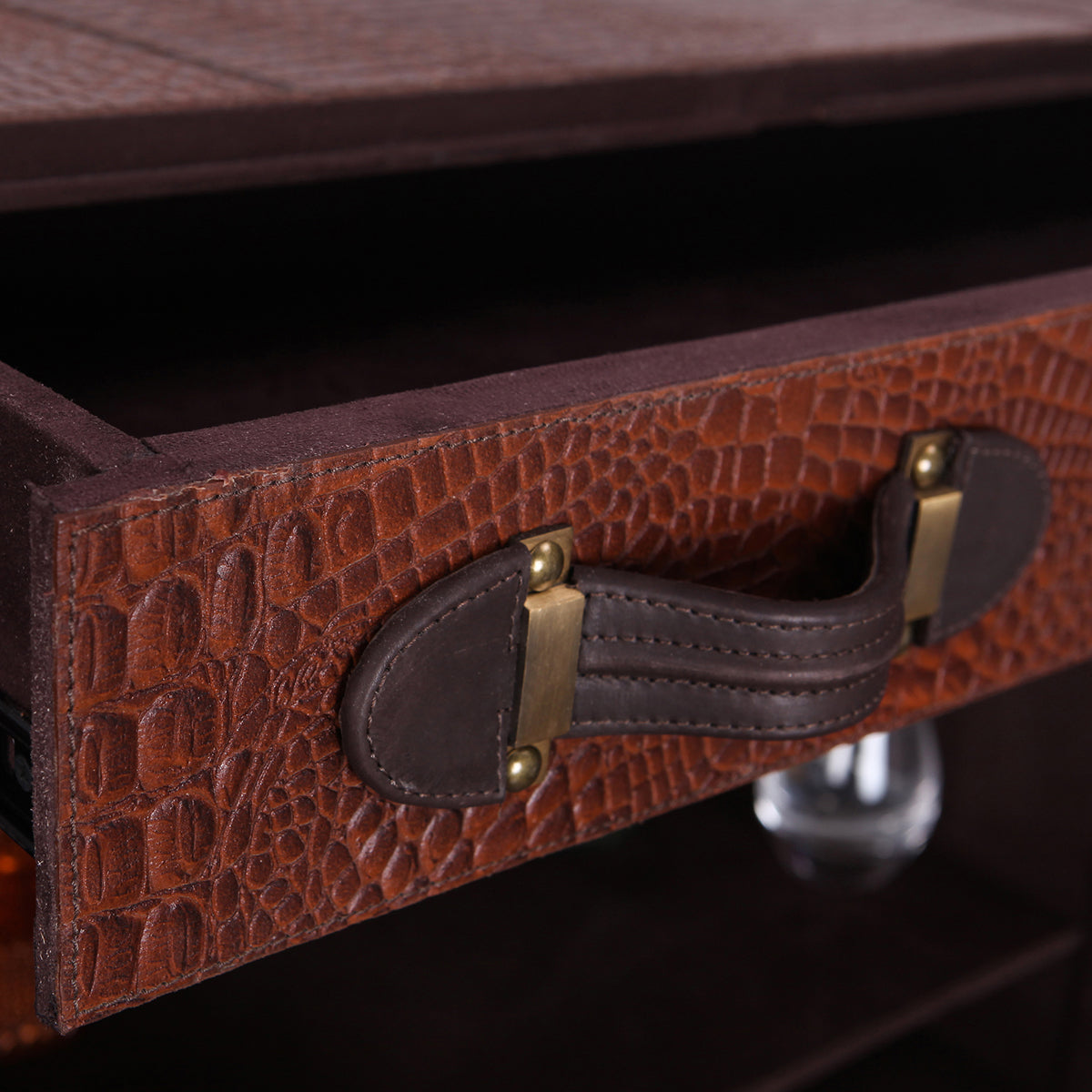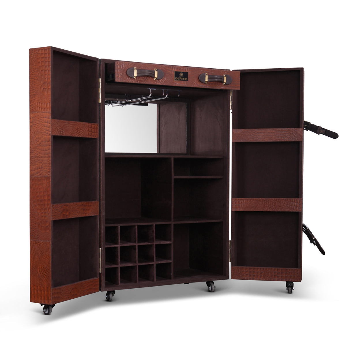 Genuine Leather, Suede Fabric Lining, Water Resistant Plywood Base and Antique Brass Metal Hardware