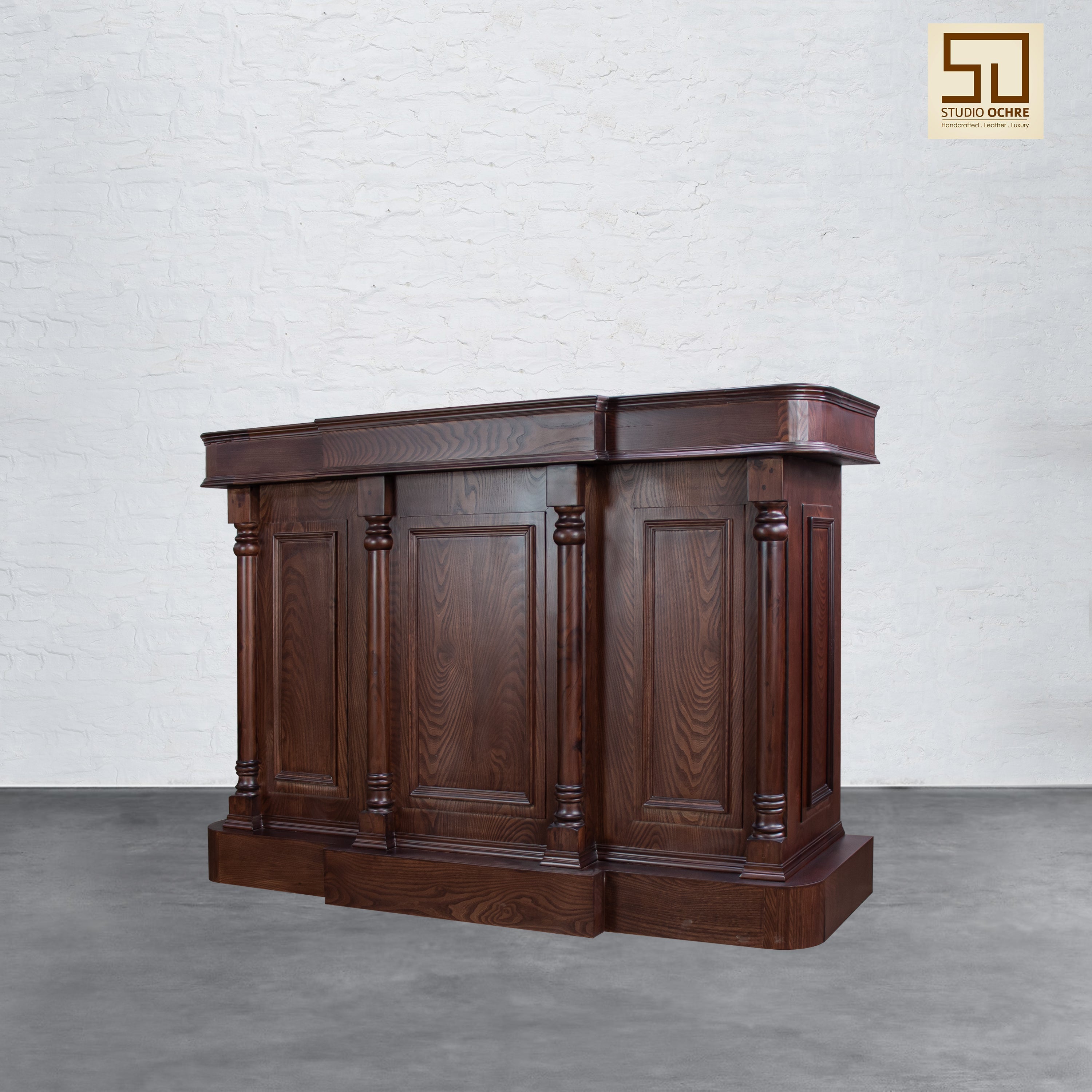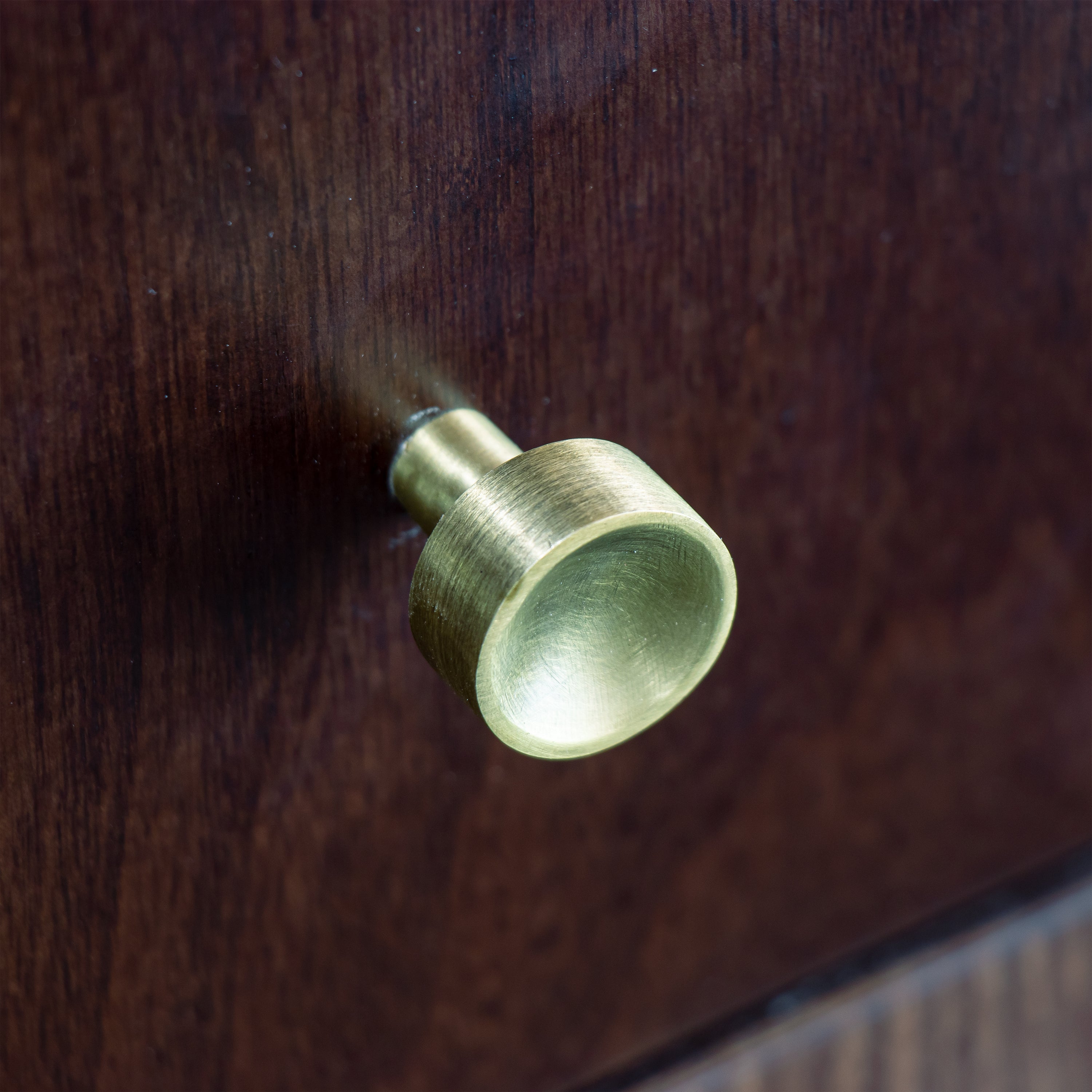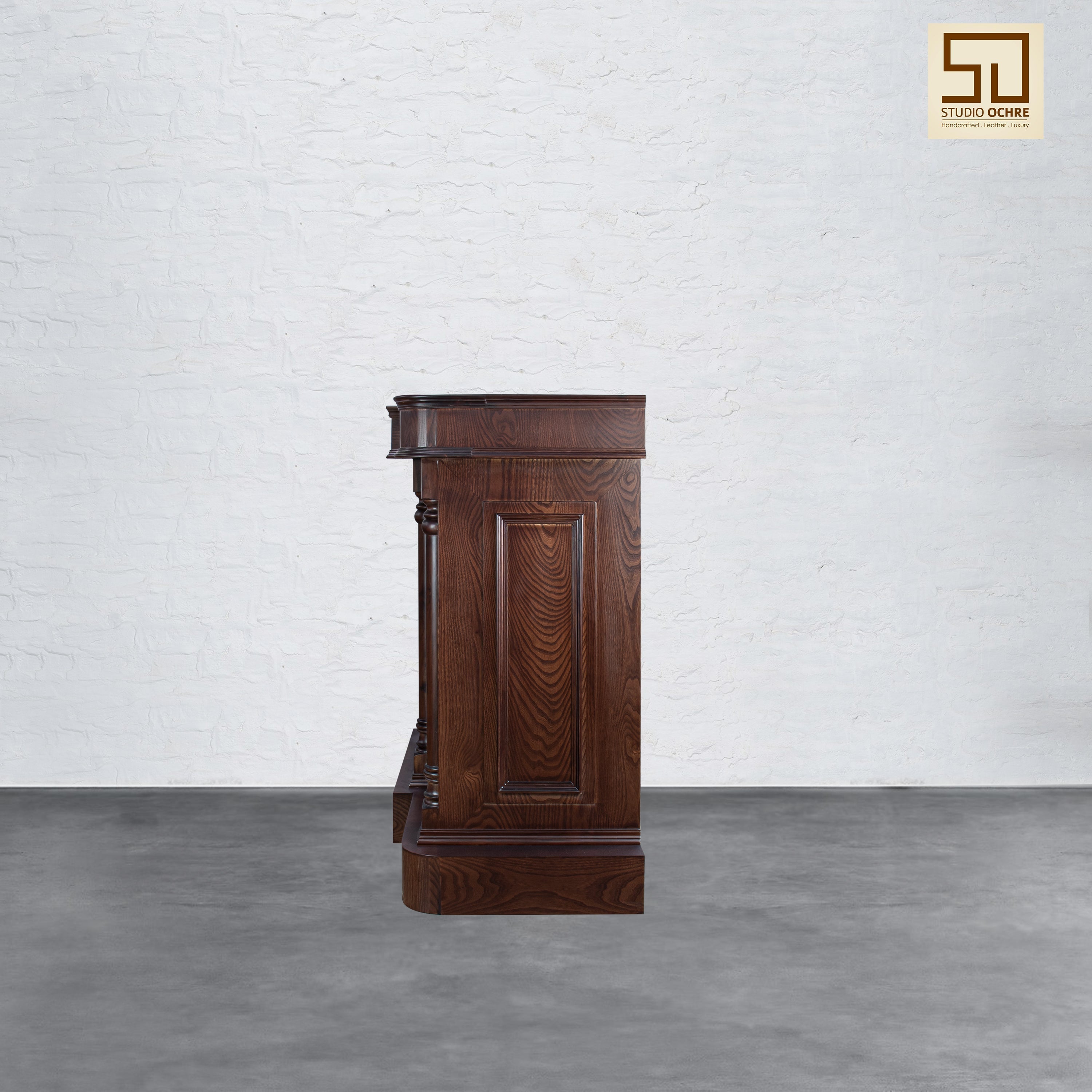 Solid Teak Wood, Fine Veneer, Fine plywood base, Suede fabric & antique brass hardware.
