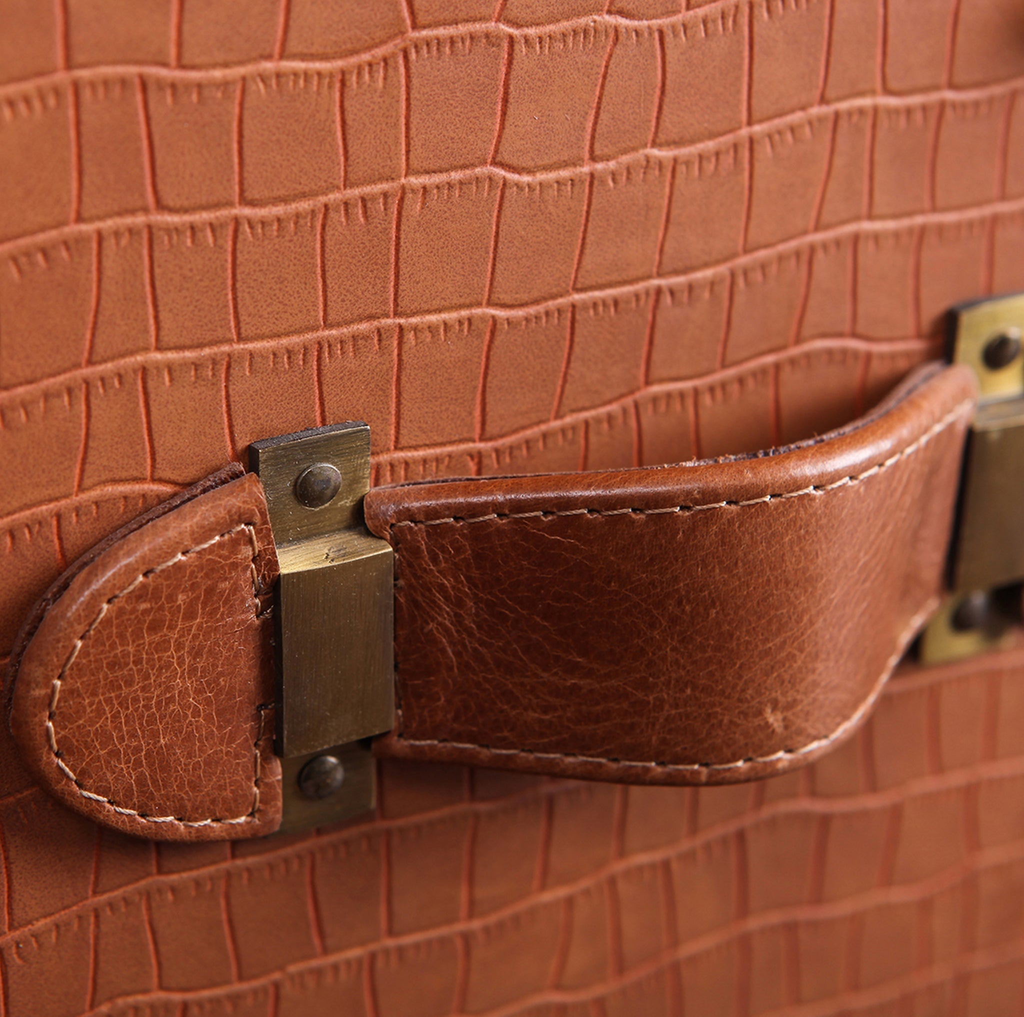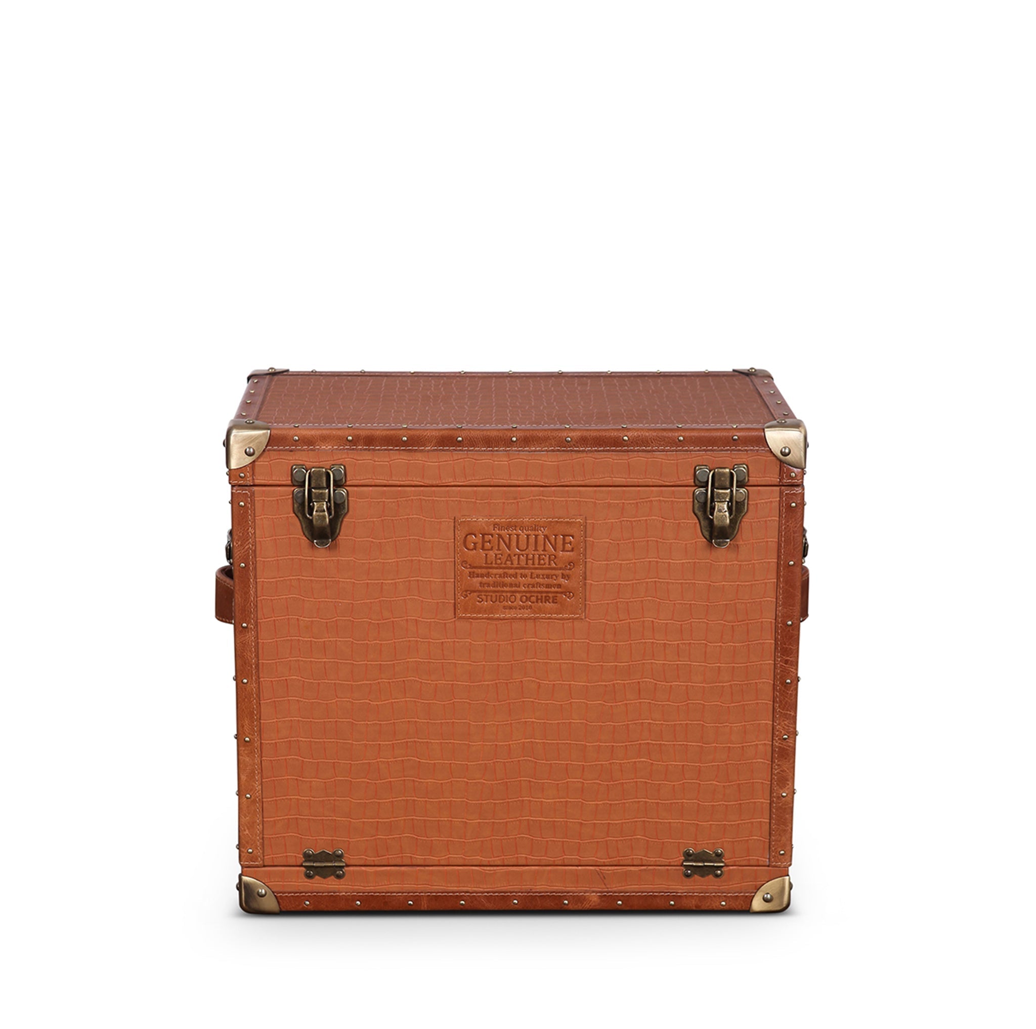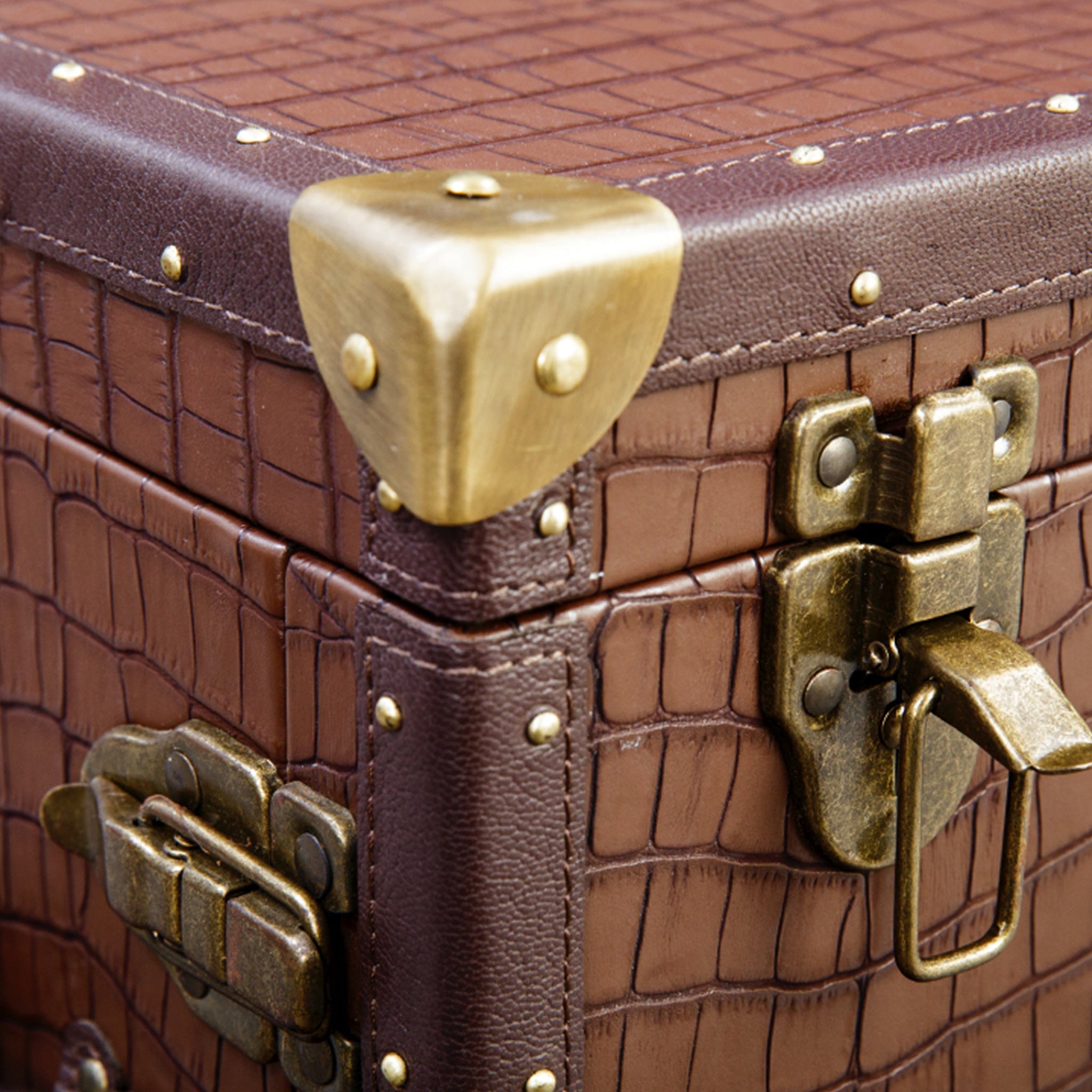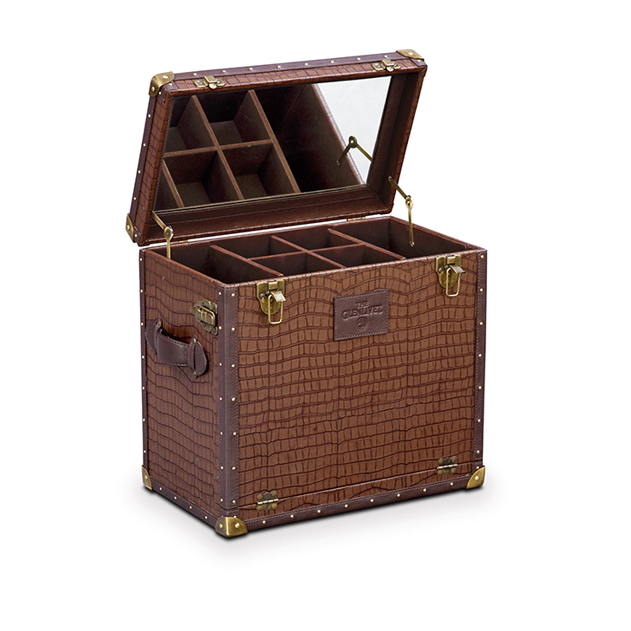 Genuine Leather, Suede Fabric Lining, Water Resistant MDF Base and Antique Brass Metal Hardware