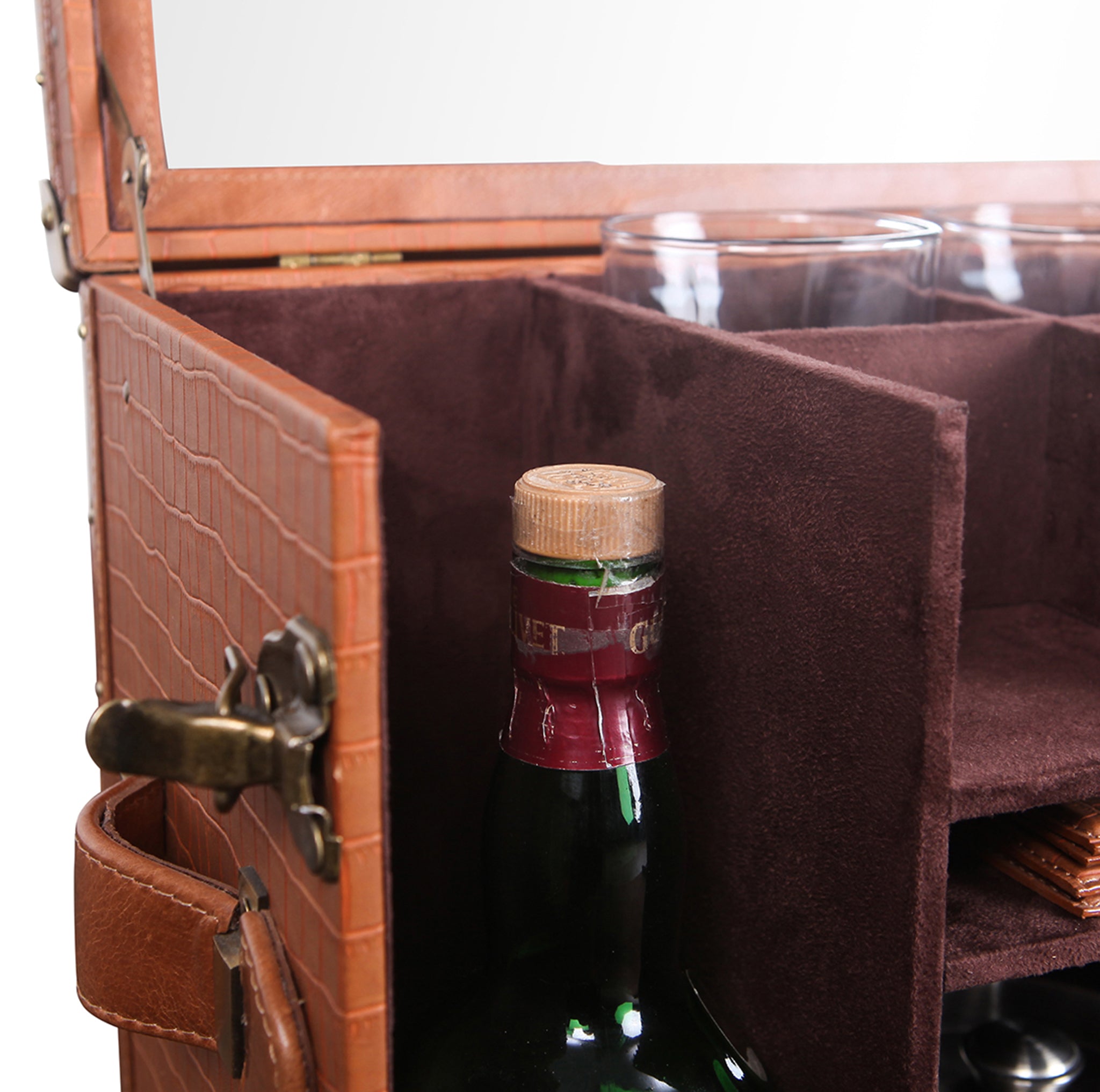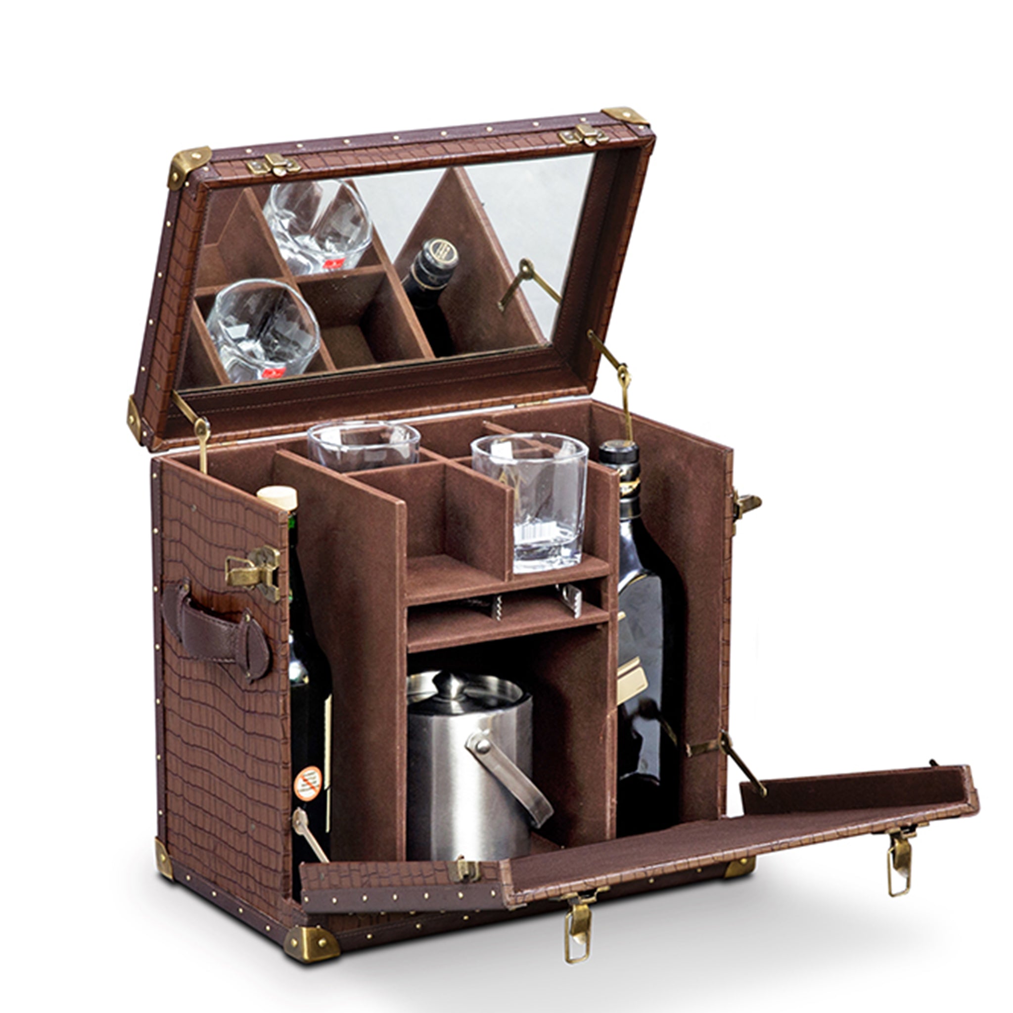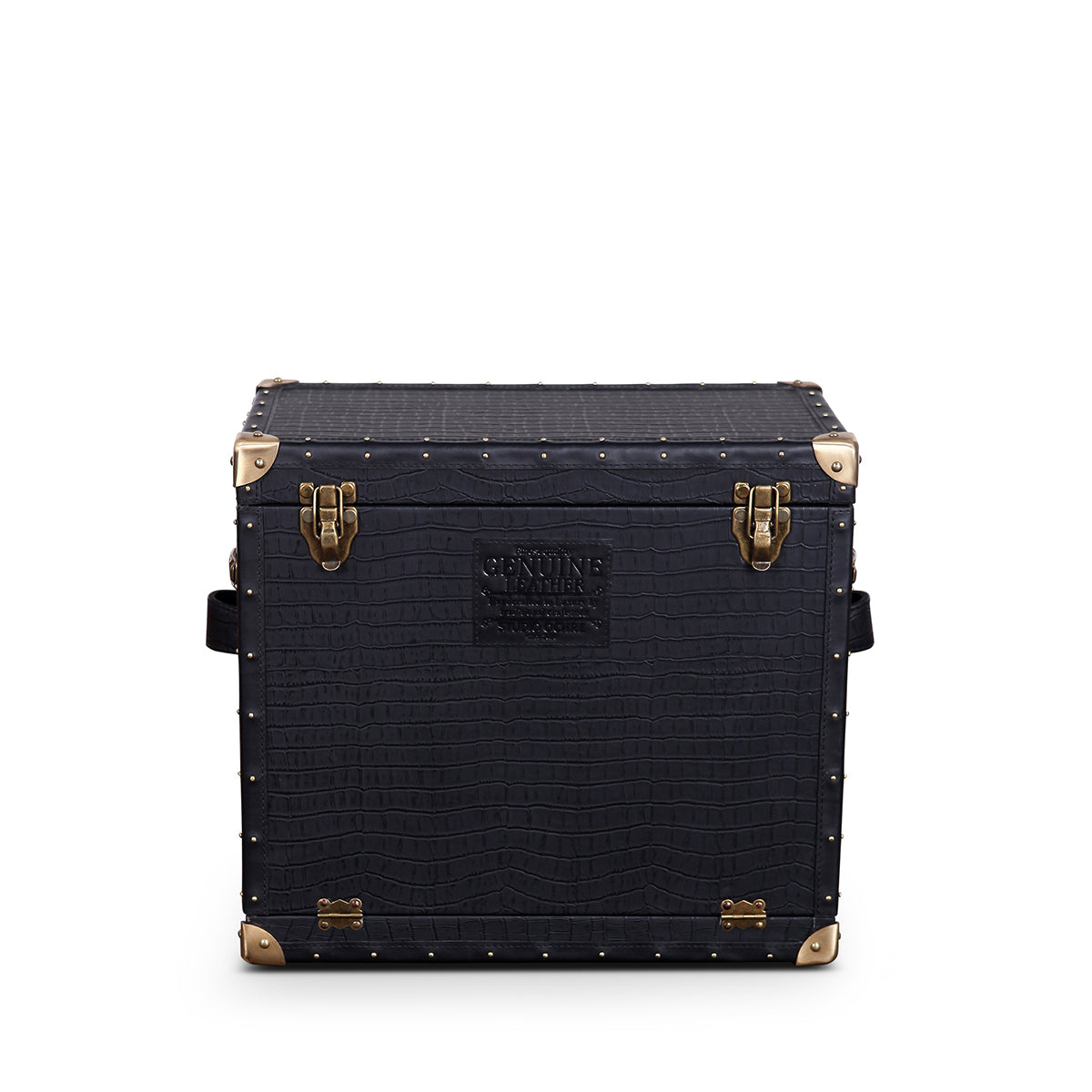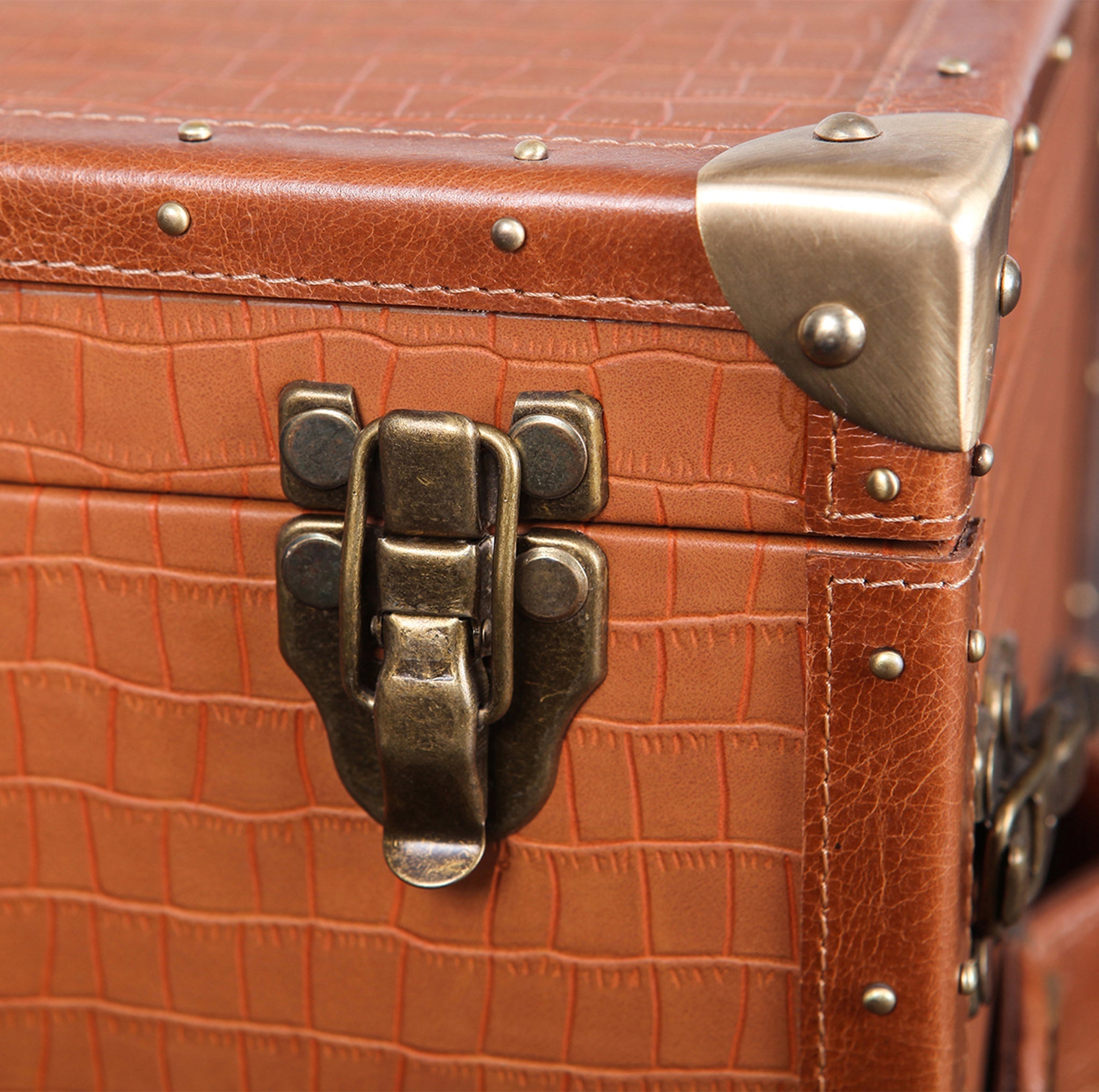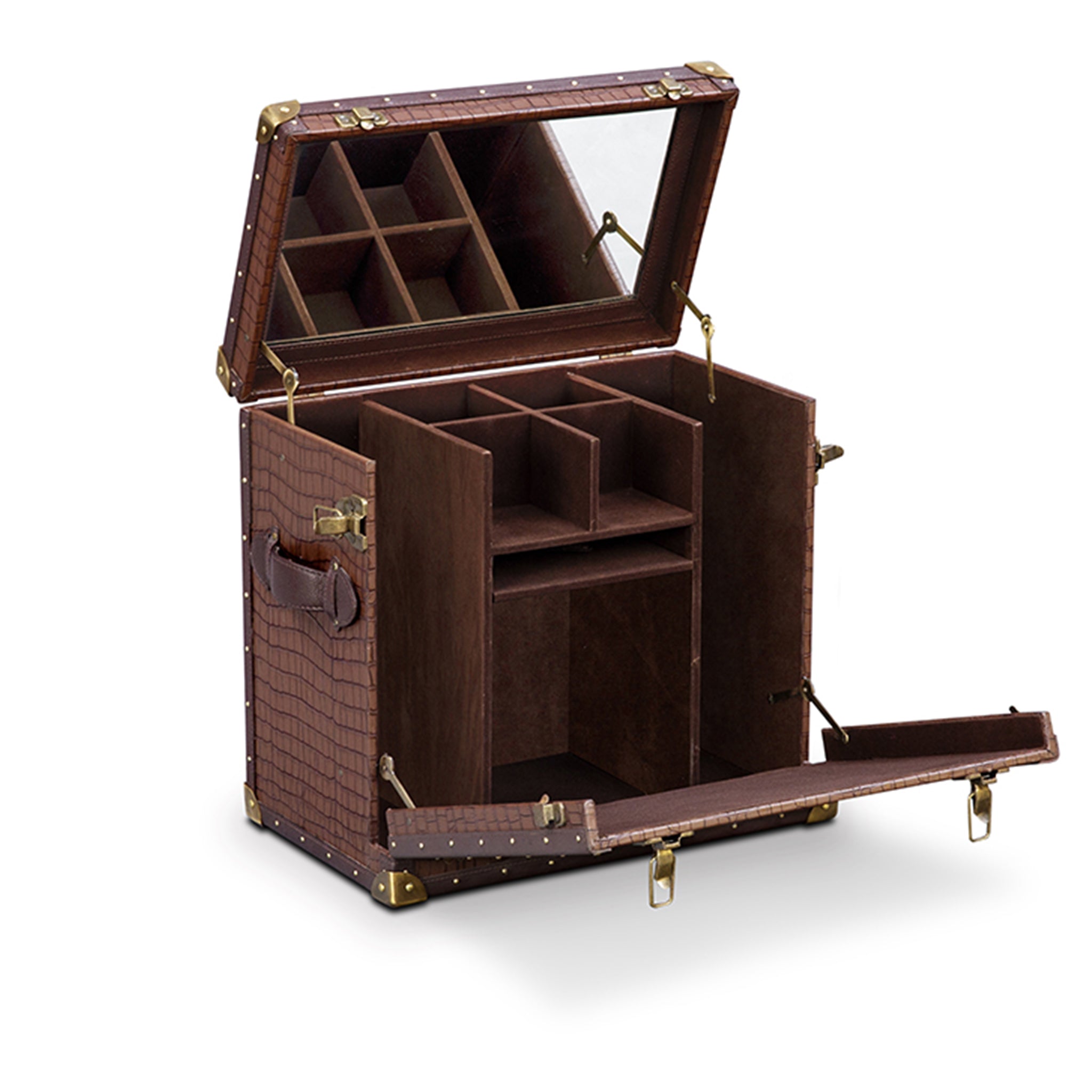 Genuine Leather, Suede Fabric Lining, Water Resistant MDF Base and Antique Brass Metal Hardware