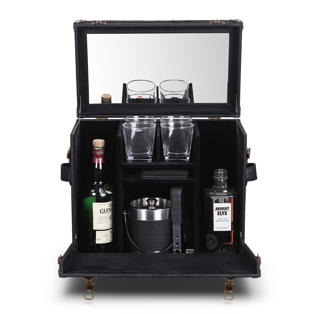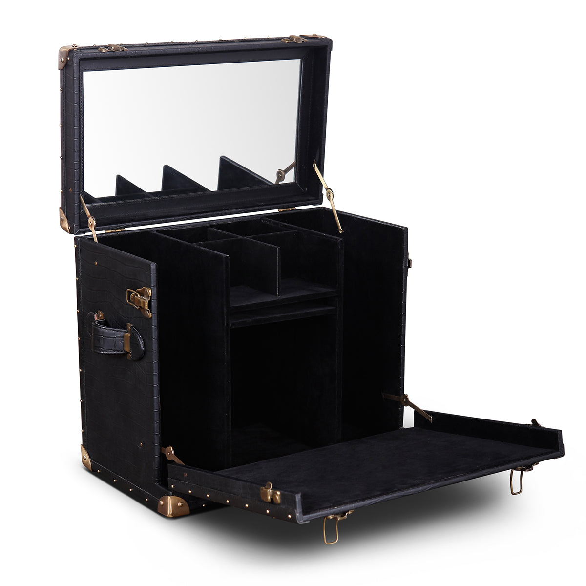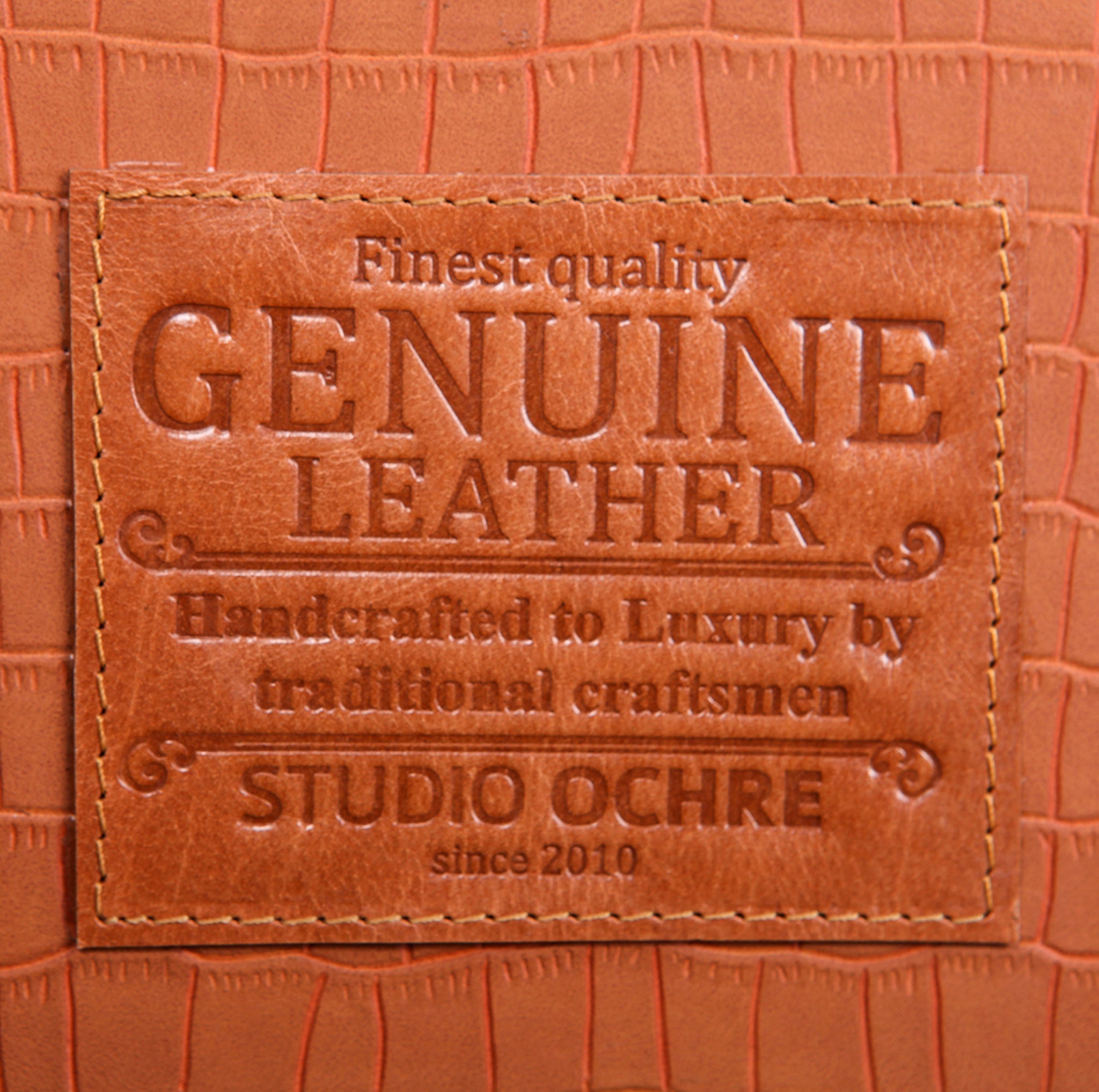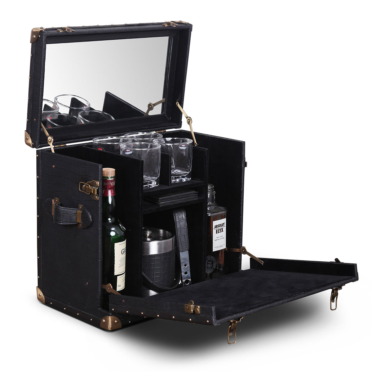 Genuine Leather, Suede Fabric Lining, Water Resistant MDF Base and Antique Brass Metal Hardware
