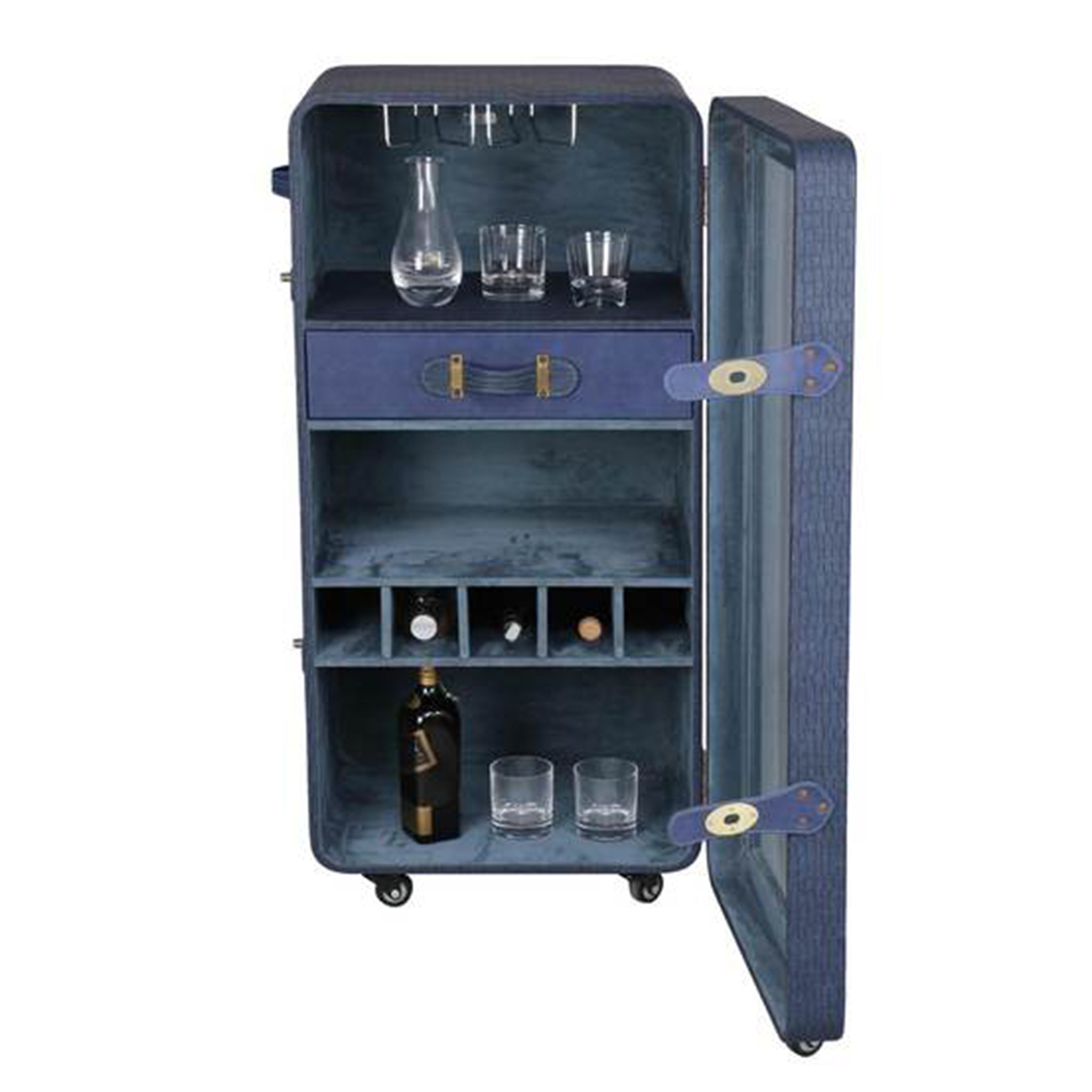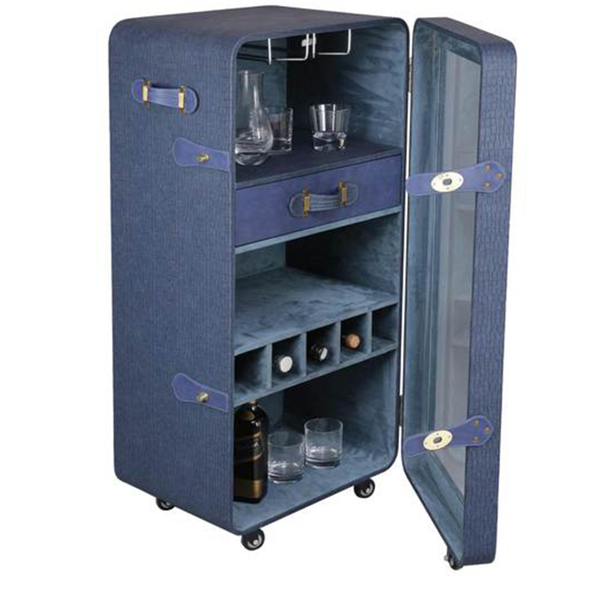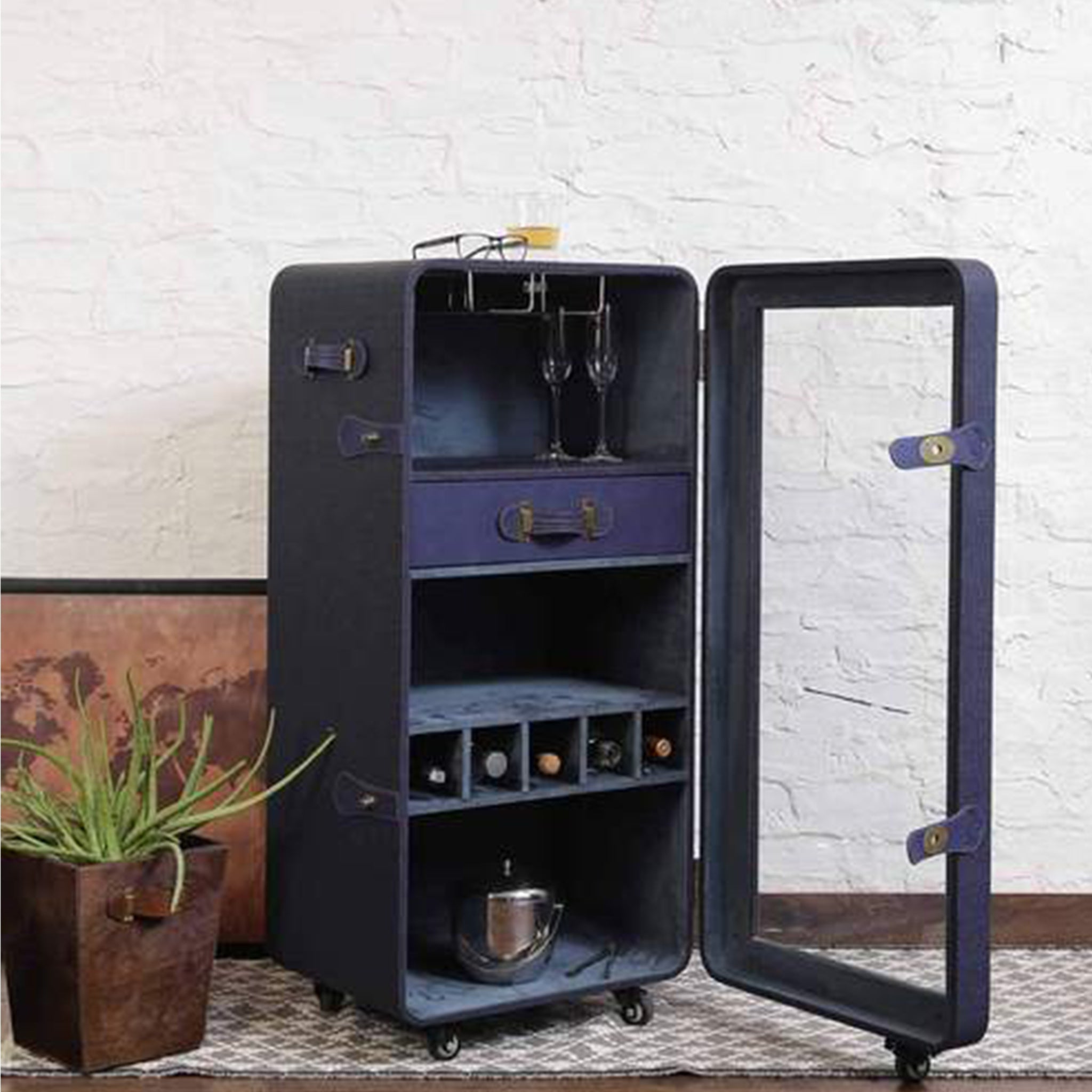 Leather, Suede Fabric Lining, Water Resistant Plywood Base and Antique Brass Metal Hardware