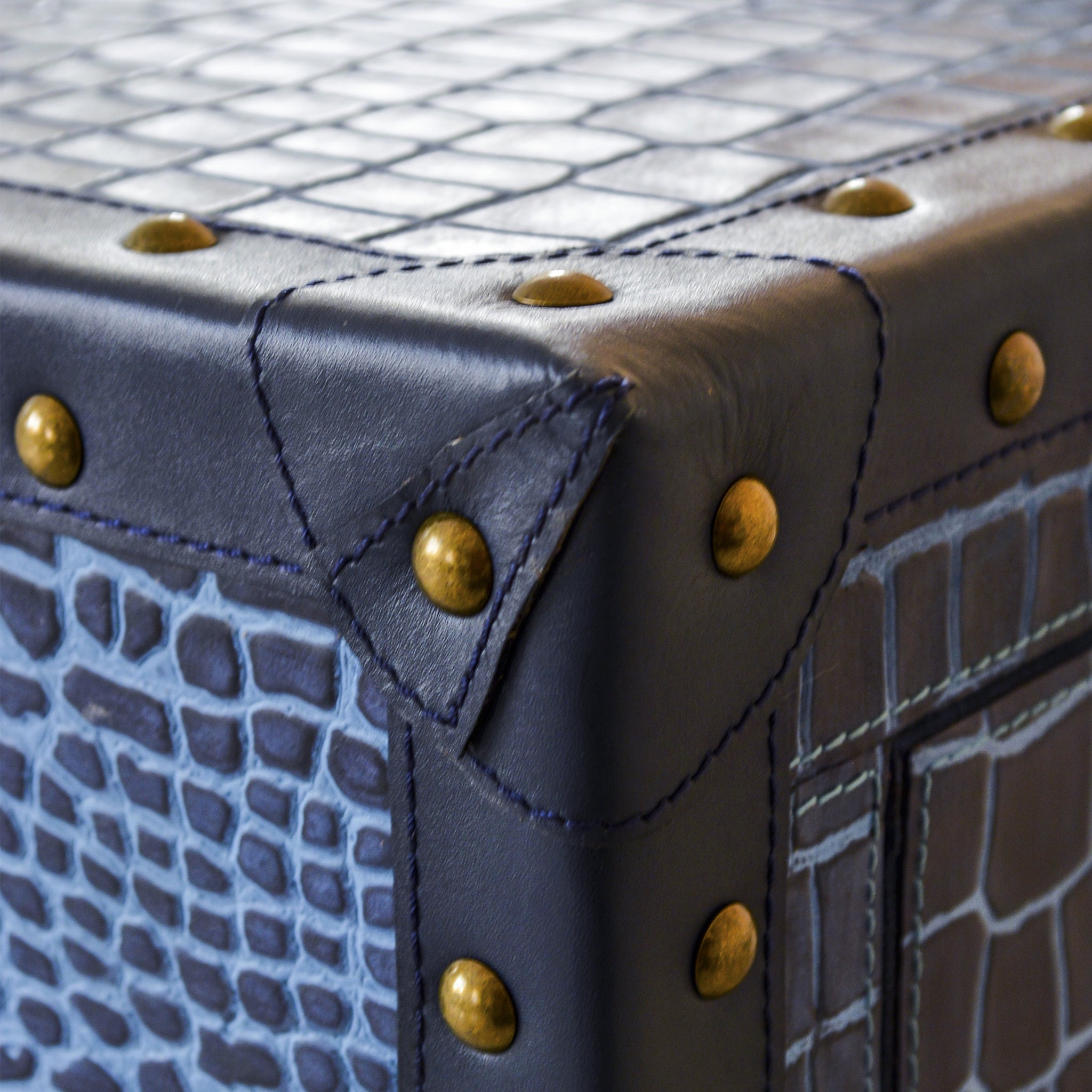 Leather, Suede Fabric Lining, Water Resistant Plywood Base and Antique Brass Metal Hardware