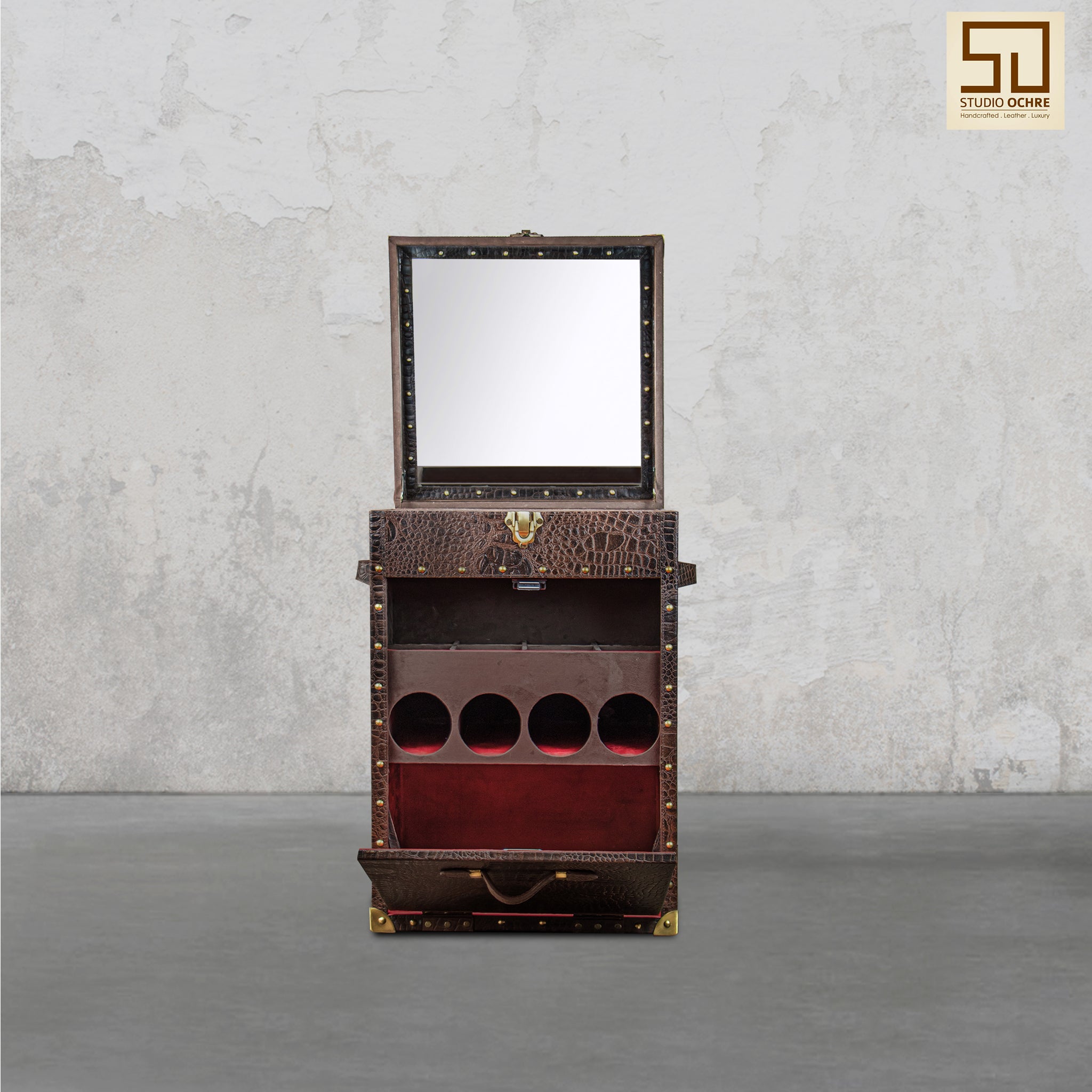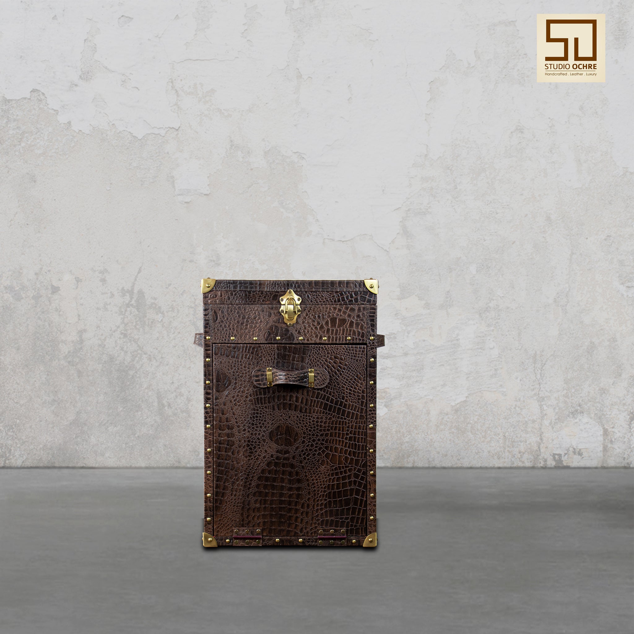 Genuine Leather, Suede Fabric Lining, Water Resistant Plywood Base and Antique Brass Metal Hardware