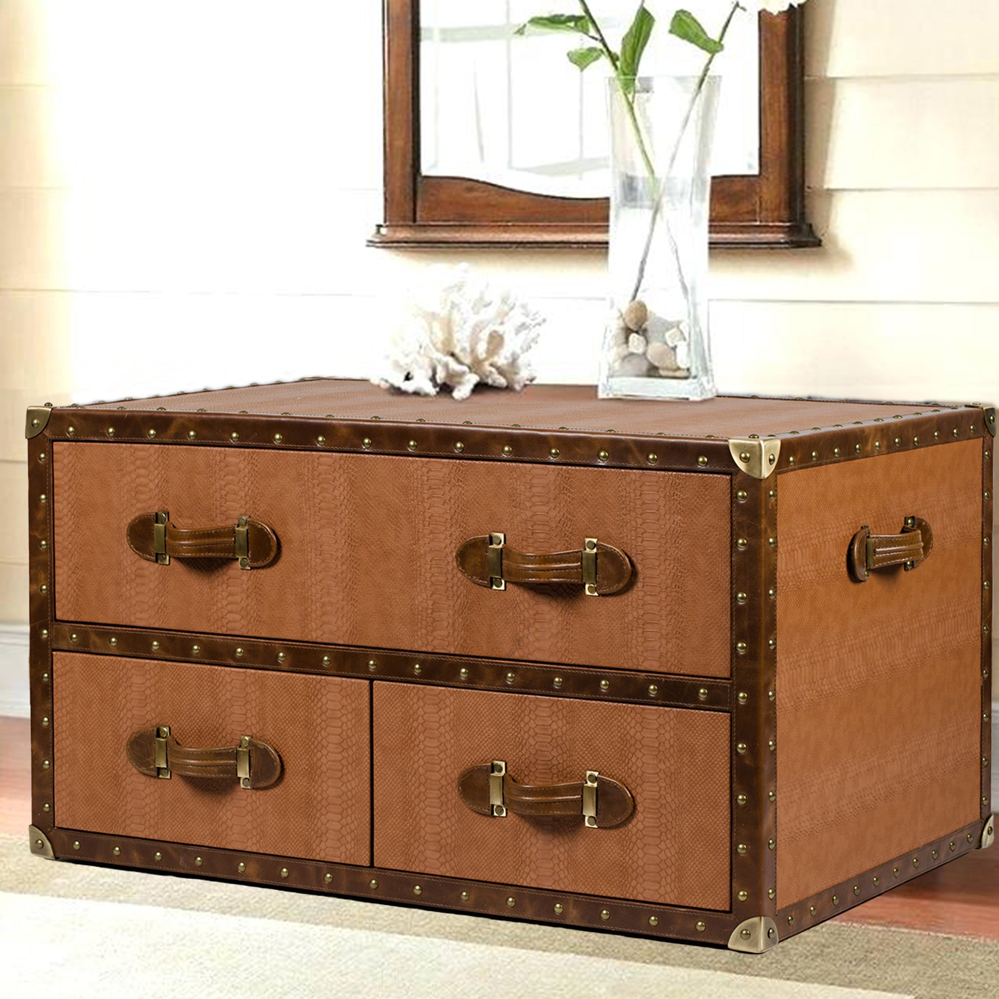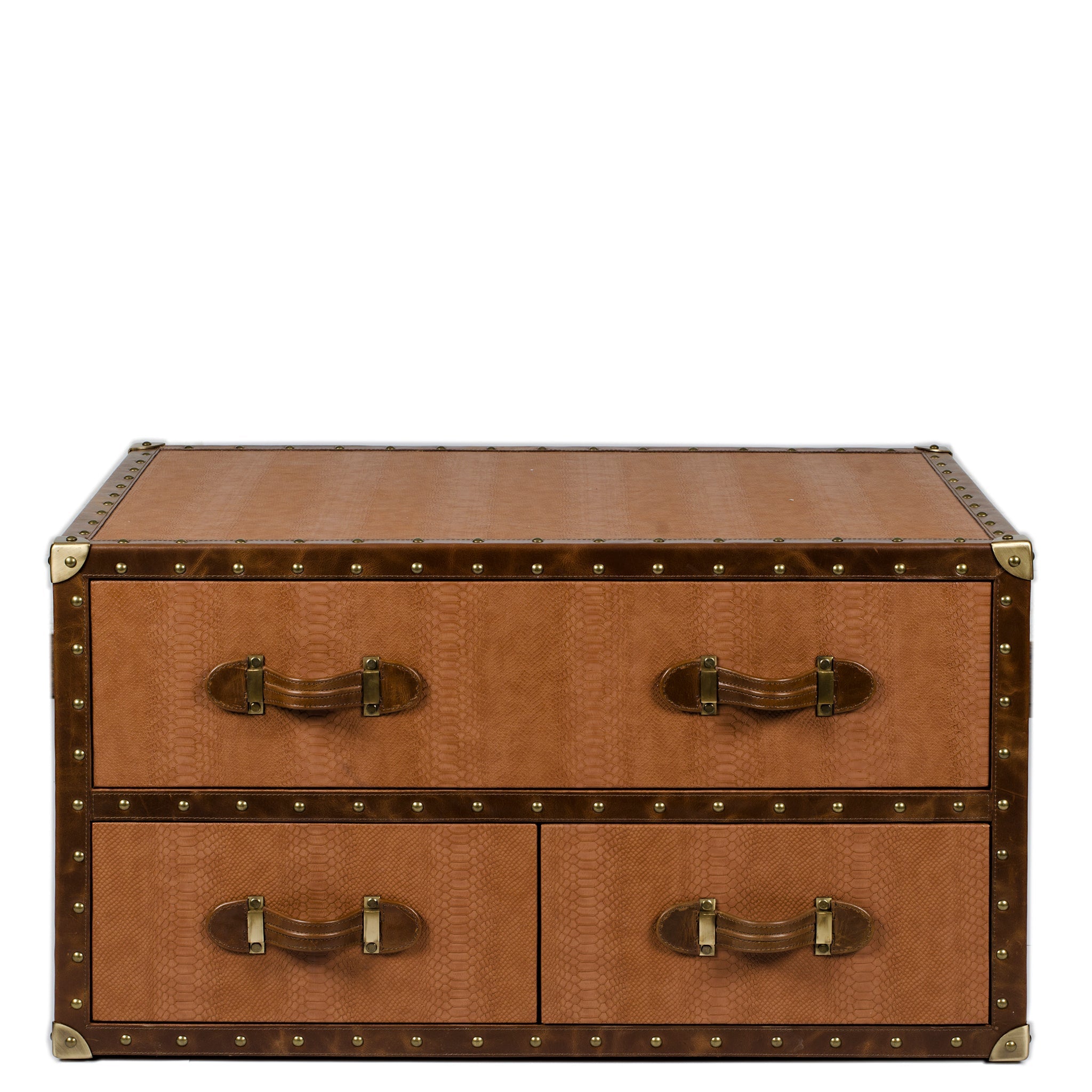 Genuine Leather, Suede Fabric Lining, Water Resistant Plywood Base and Antique Brass Metal Hardware