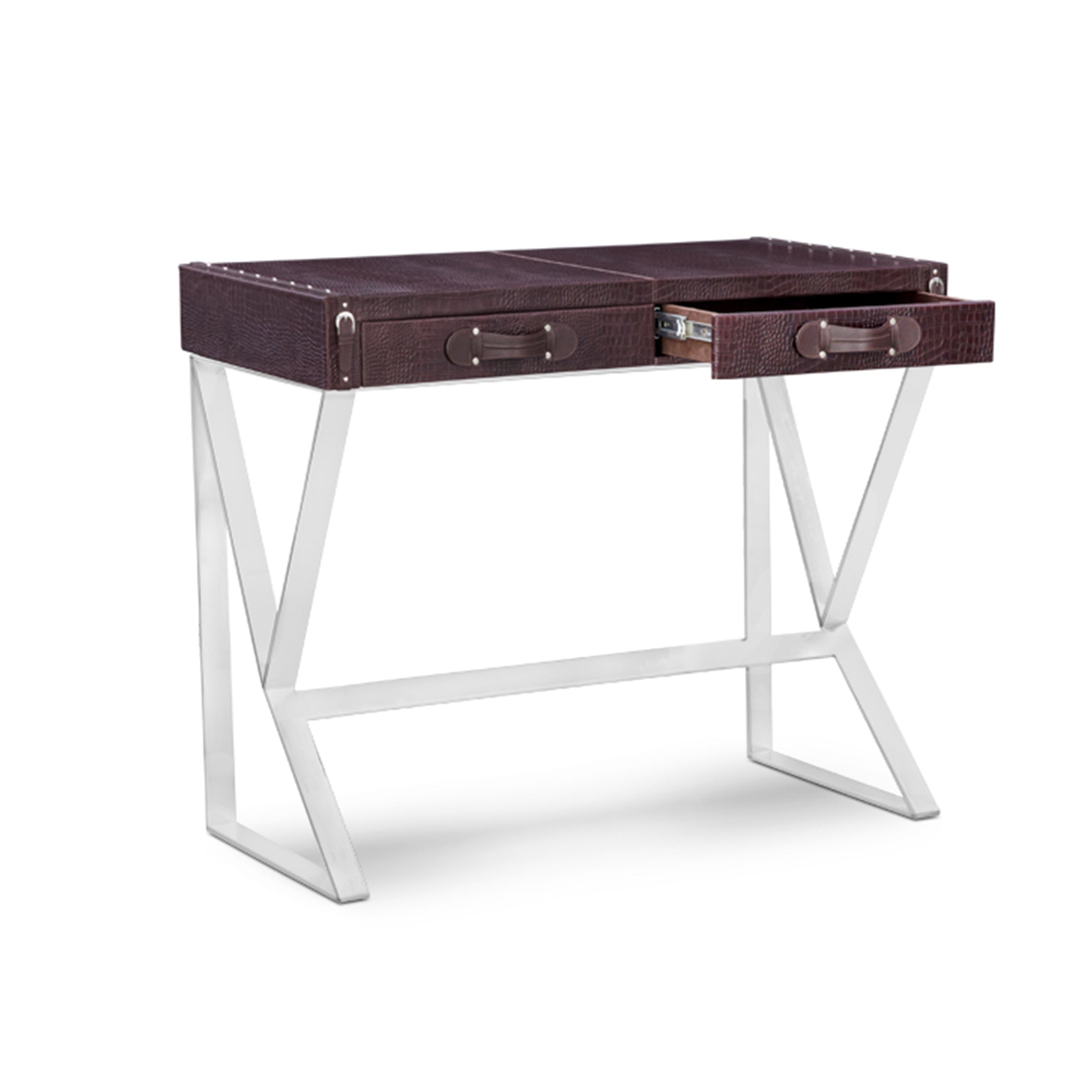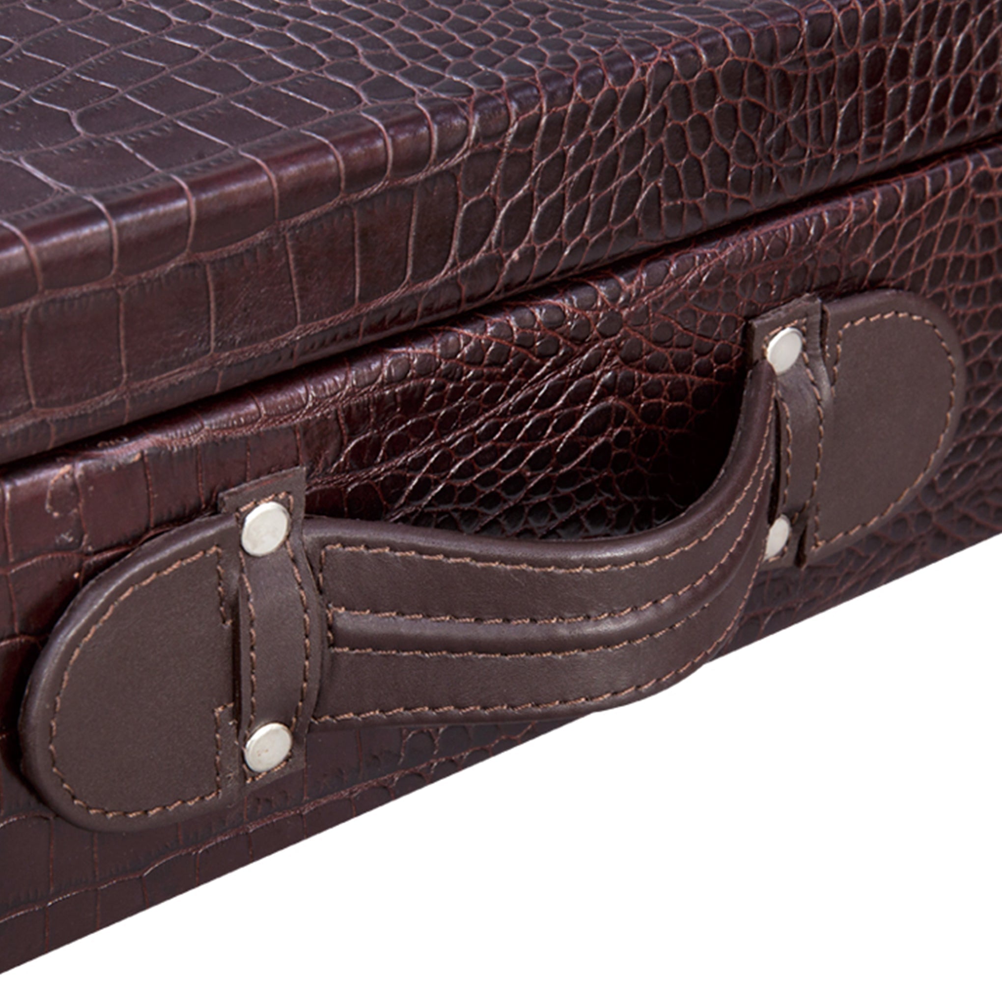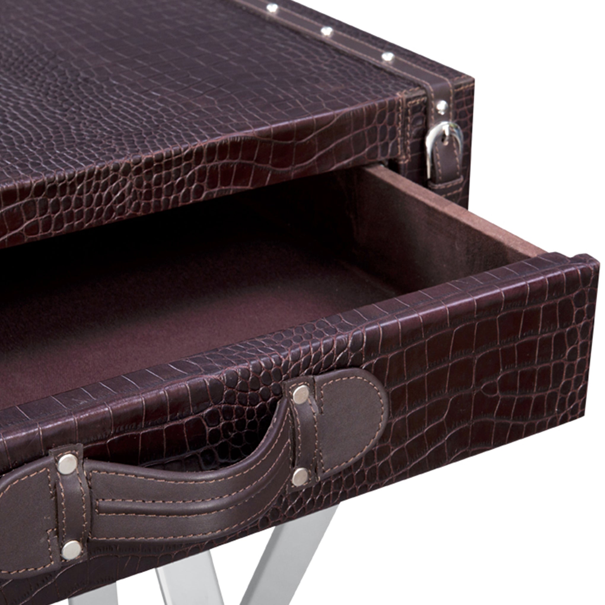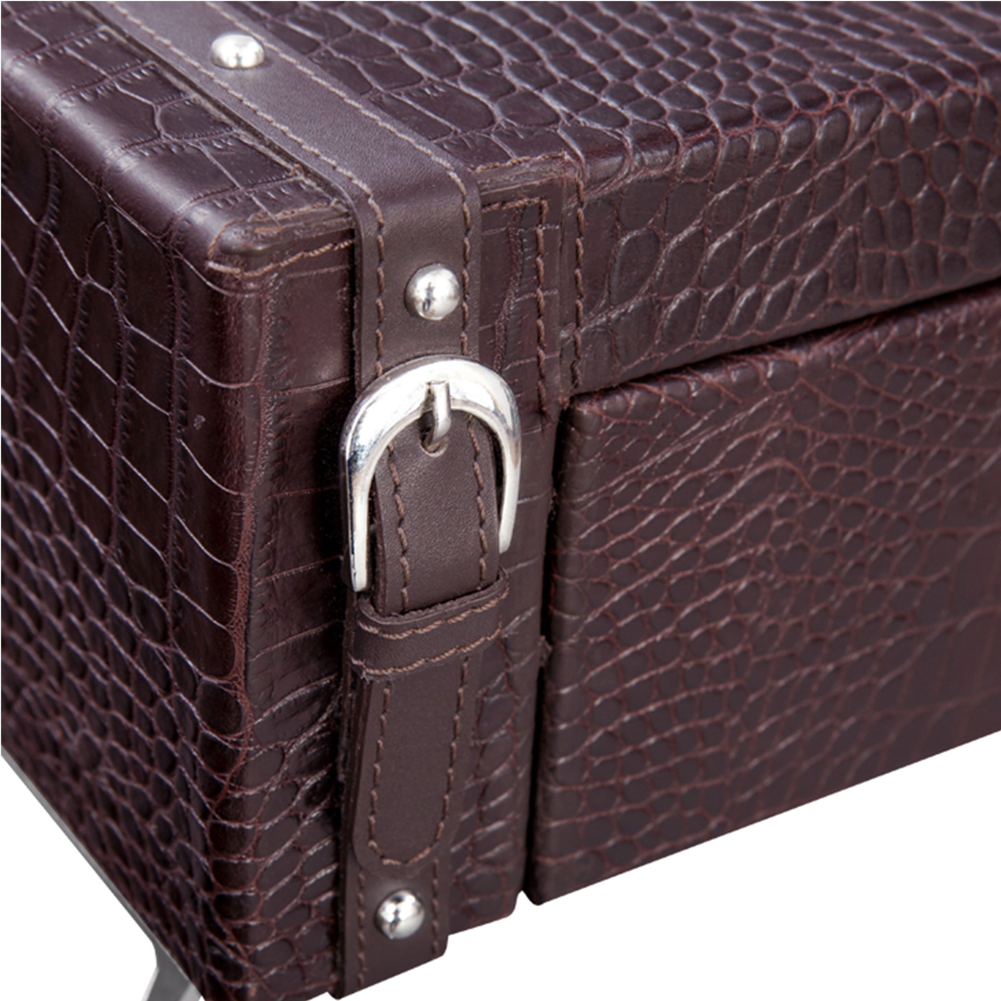 Genuine Leather, Suede Fabric Lining, Water Resistant Plywood Base, Stainless Steel Frame, and Chrome Finish Metal Hardware