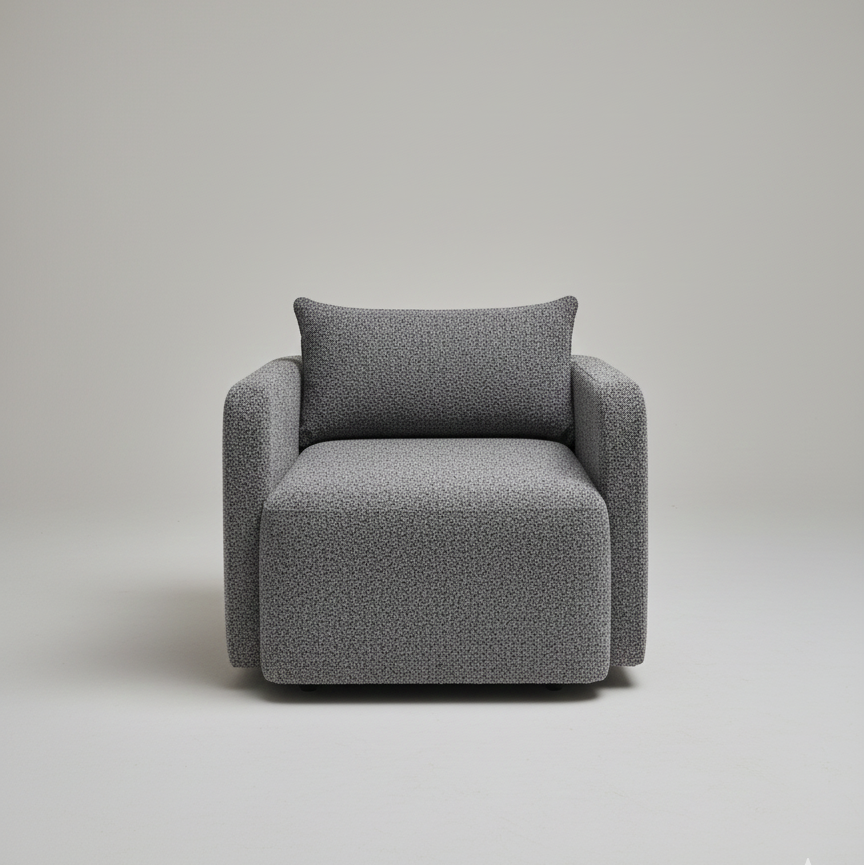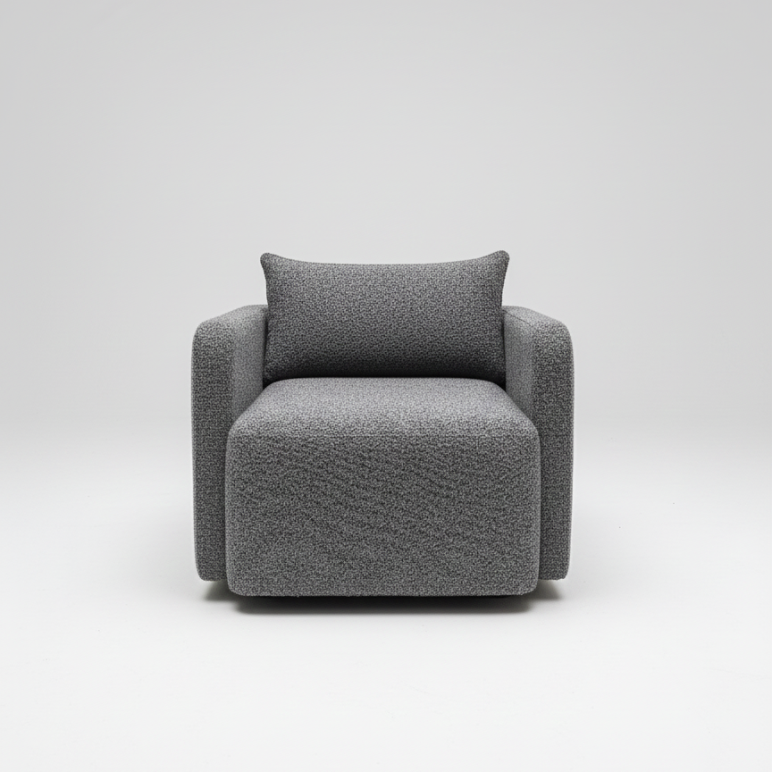 Handcrafted with precision and upholstered in carefully selected materials, the chair provides generous seating and ergonomic support while maintaining a refined silhouette. The revolving mechanism adds ease of movement, making it ideal for workspaces, lounges, bedrooms, or reading corners.