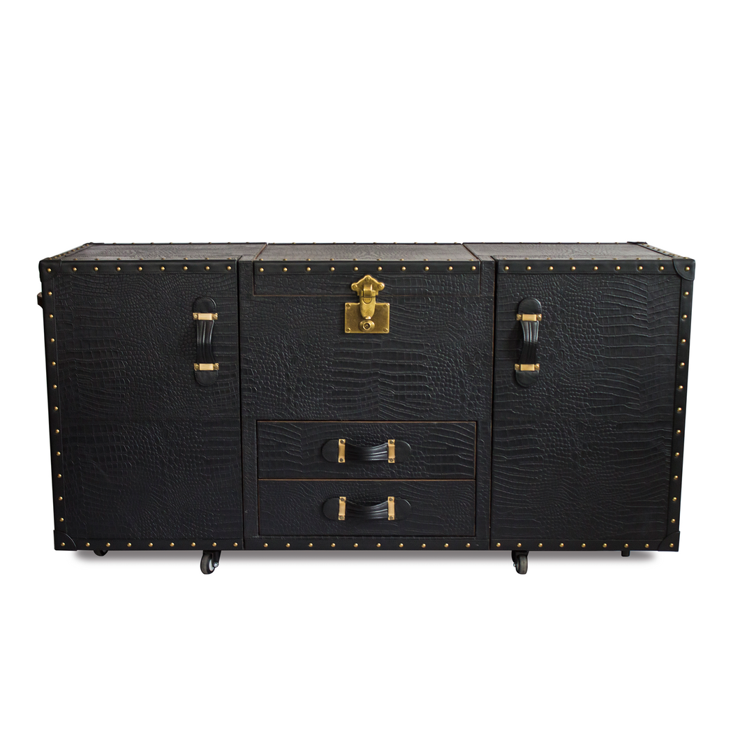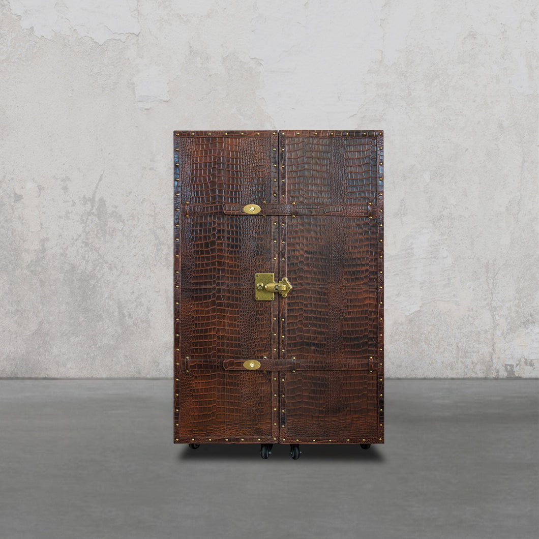 • Heritage Trunk Bar Cart - Vintage Brown Tan