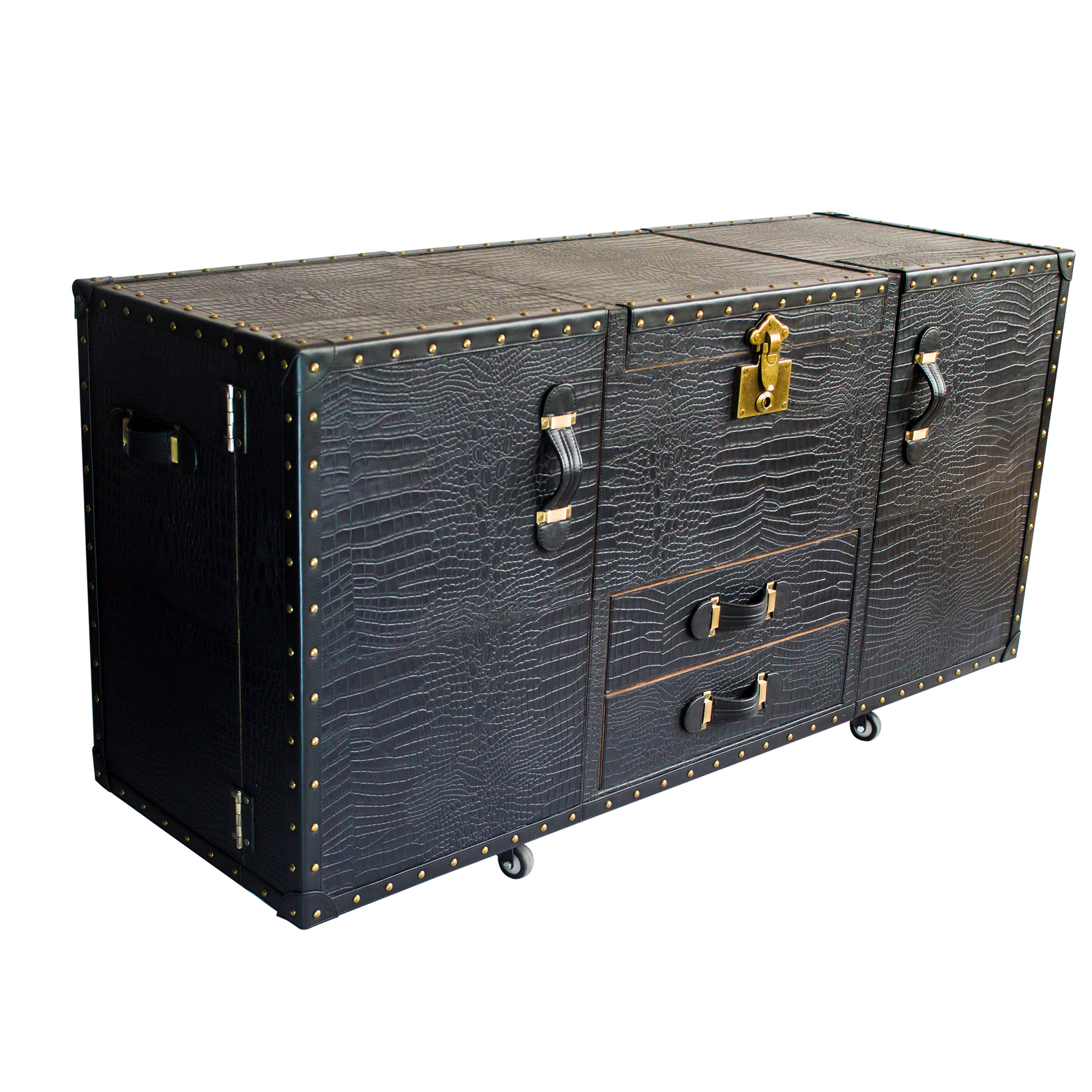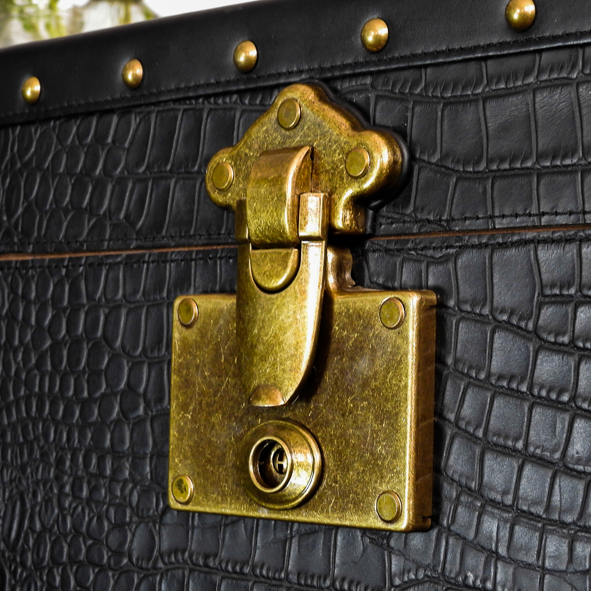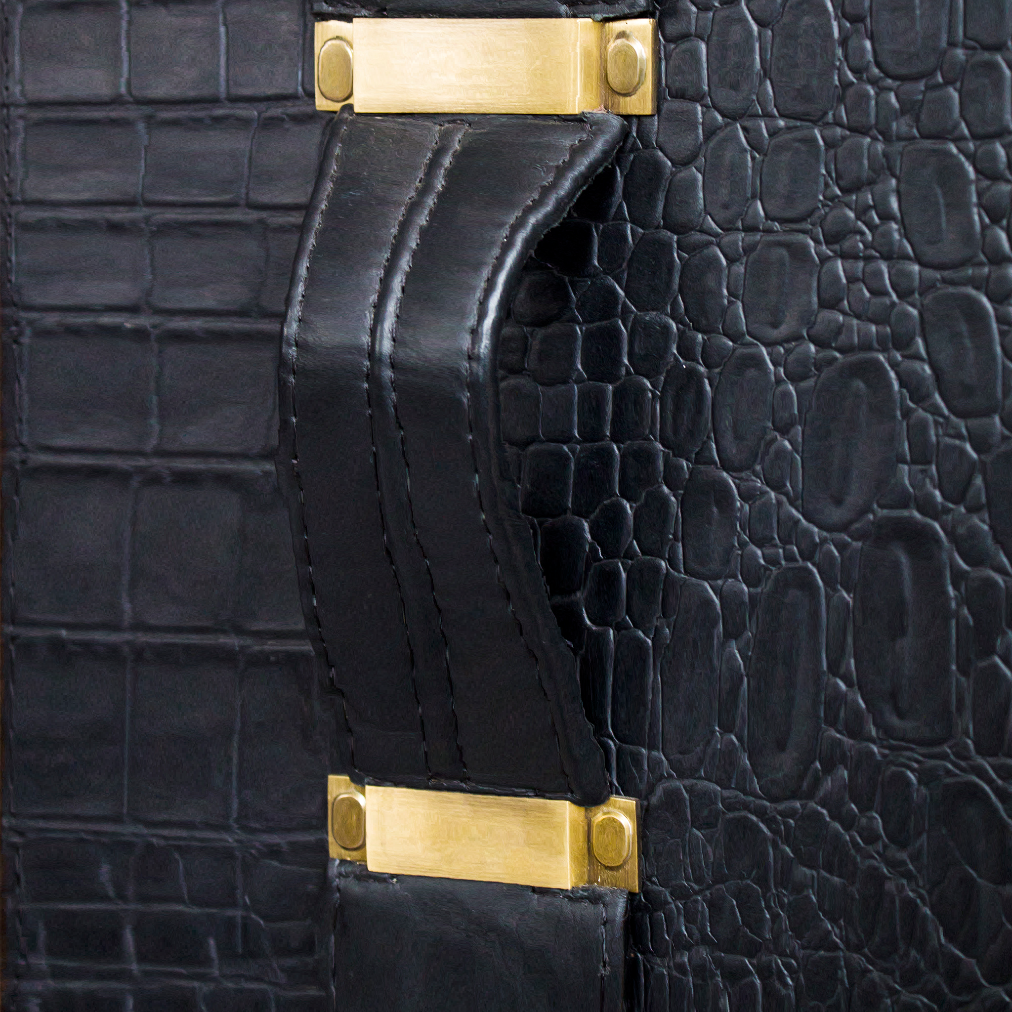 Genuine Leather, Suede Fabric Lining, Water Resistant Plywood Base and Antique Brass Metal Hardware