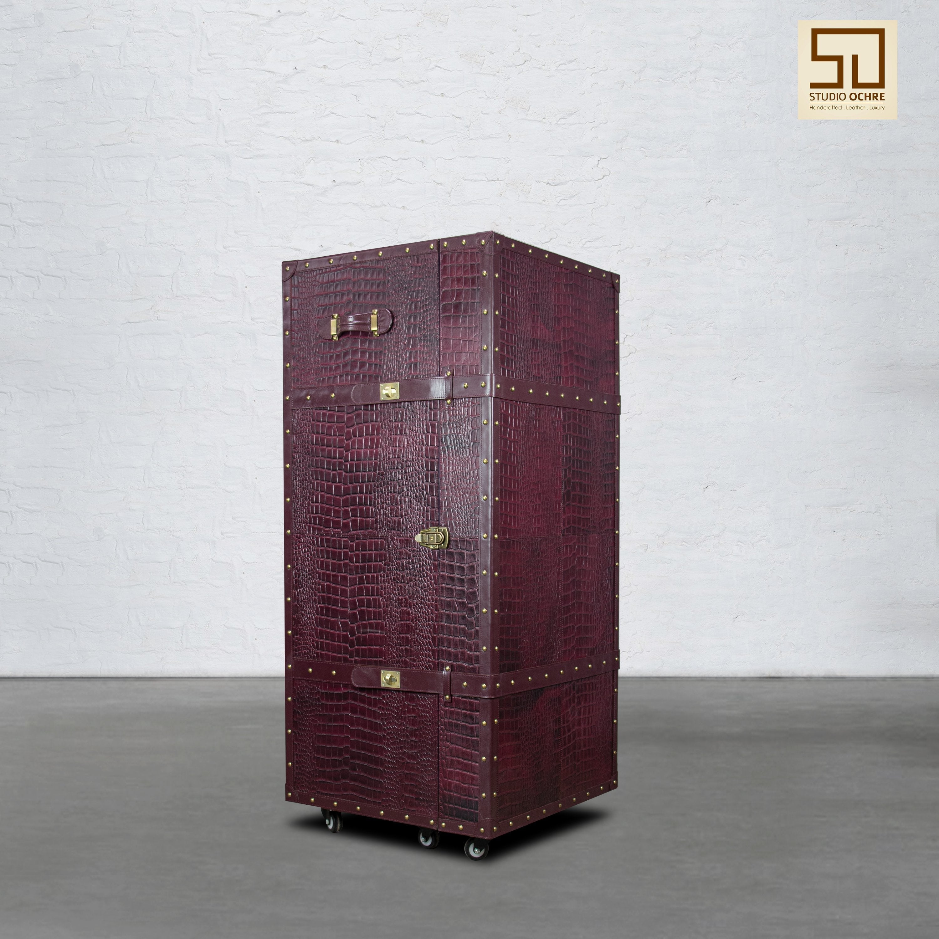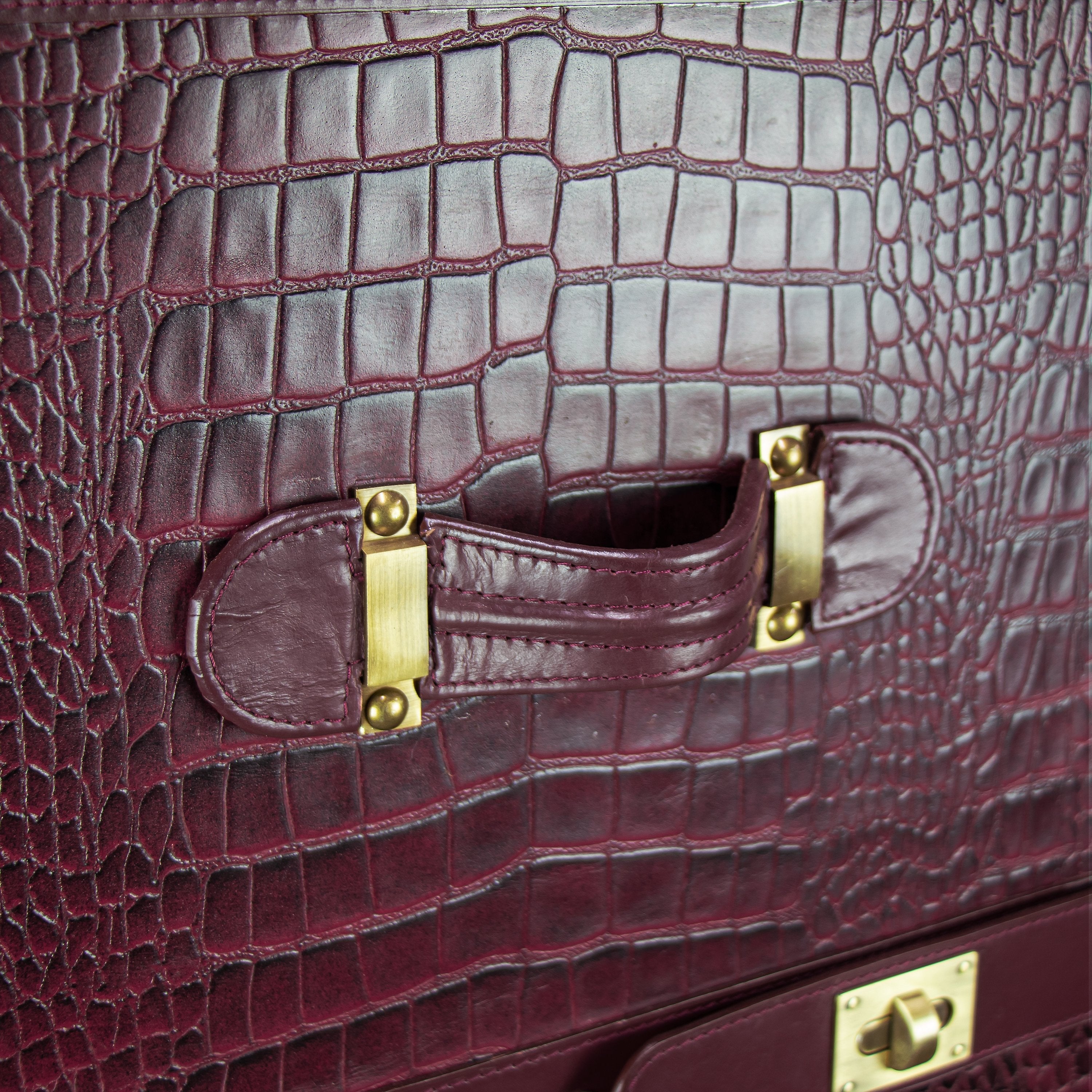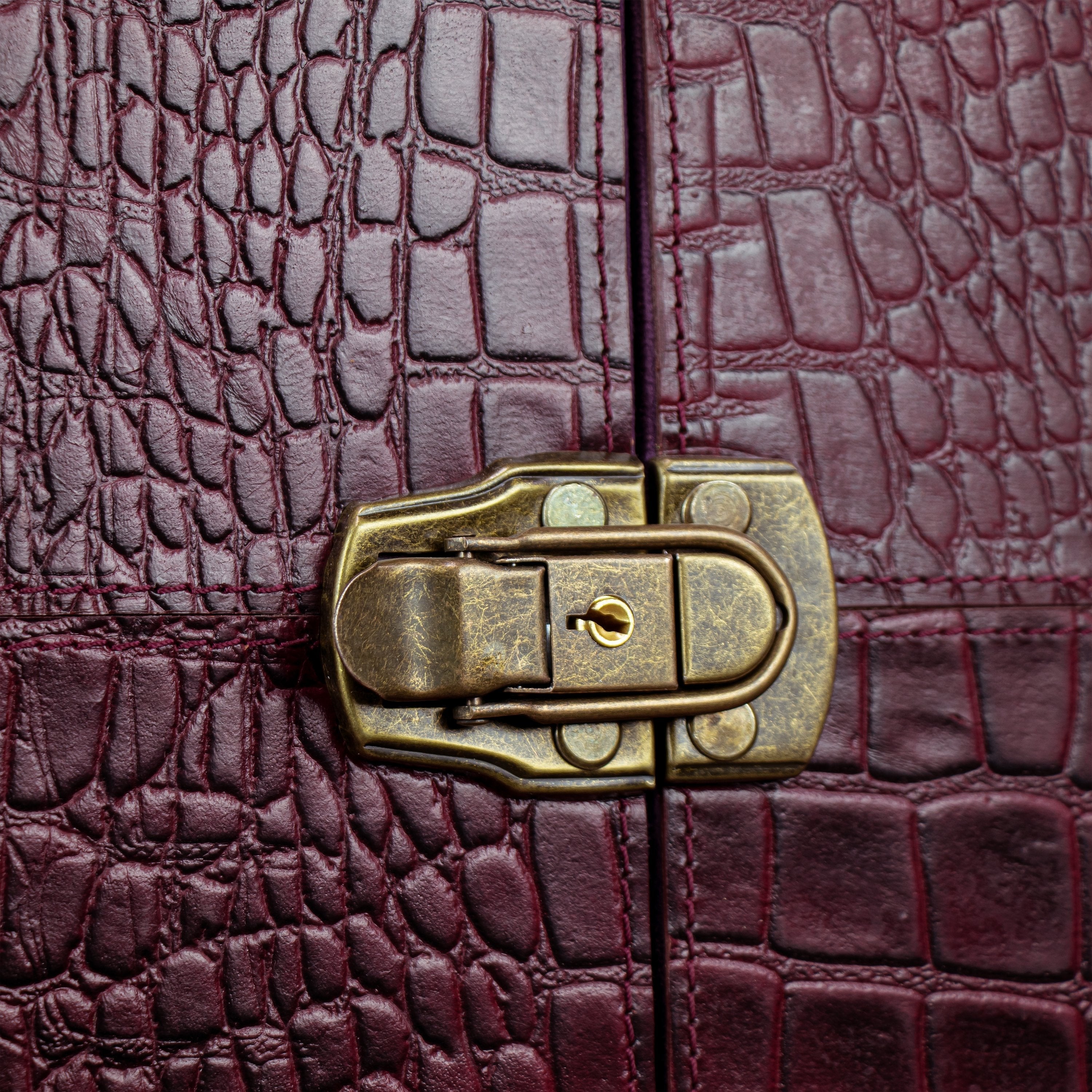 Leather, Suede Fabric Lining, Water Resistant Plywood Base and Antique Brass Metal Hardware