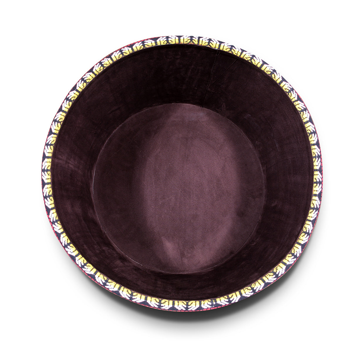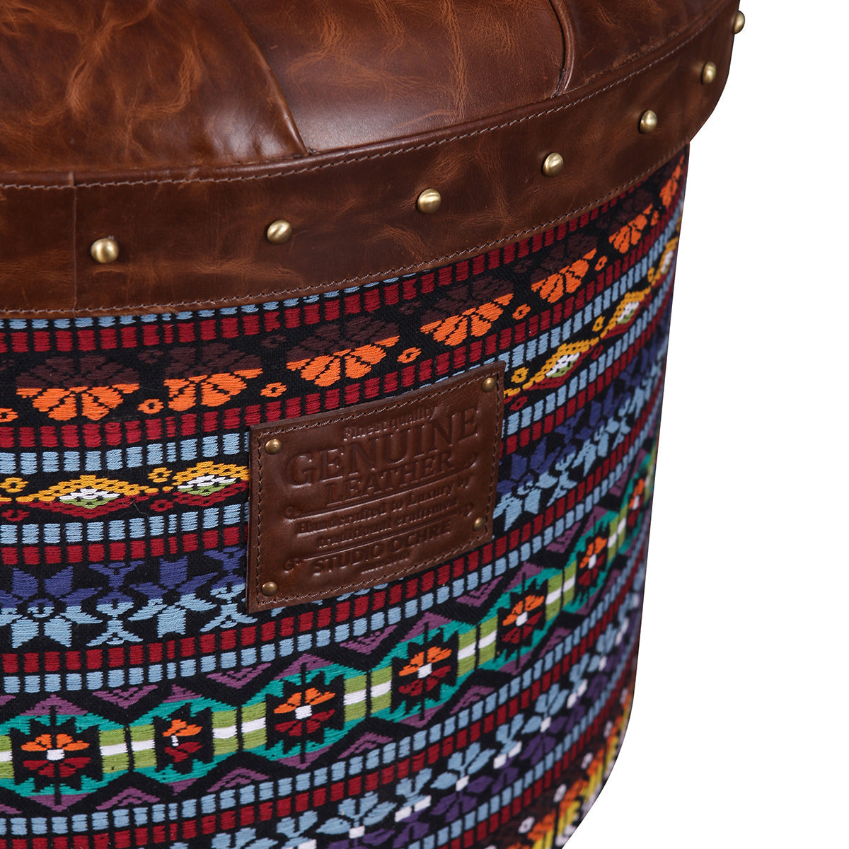 Genuine Leather, Cotton Fabric, Suede Fabric Lining, Water Resistant MDF Base and Antique Brass Metal Hardware