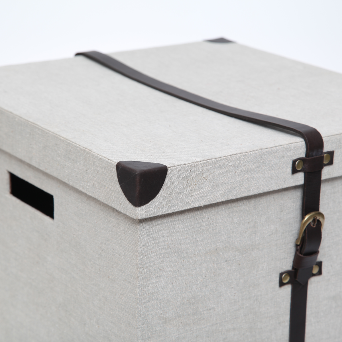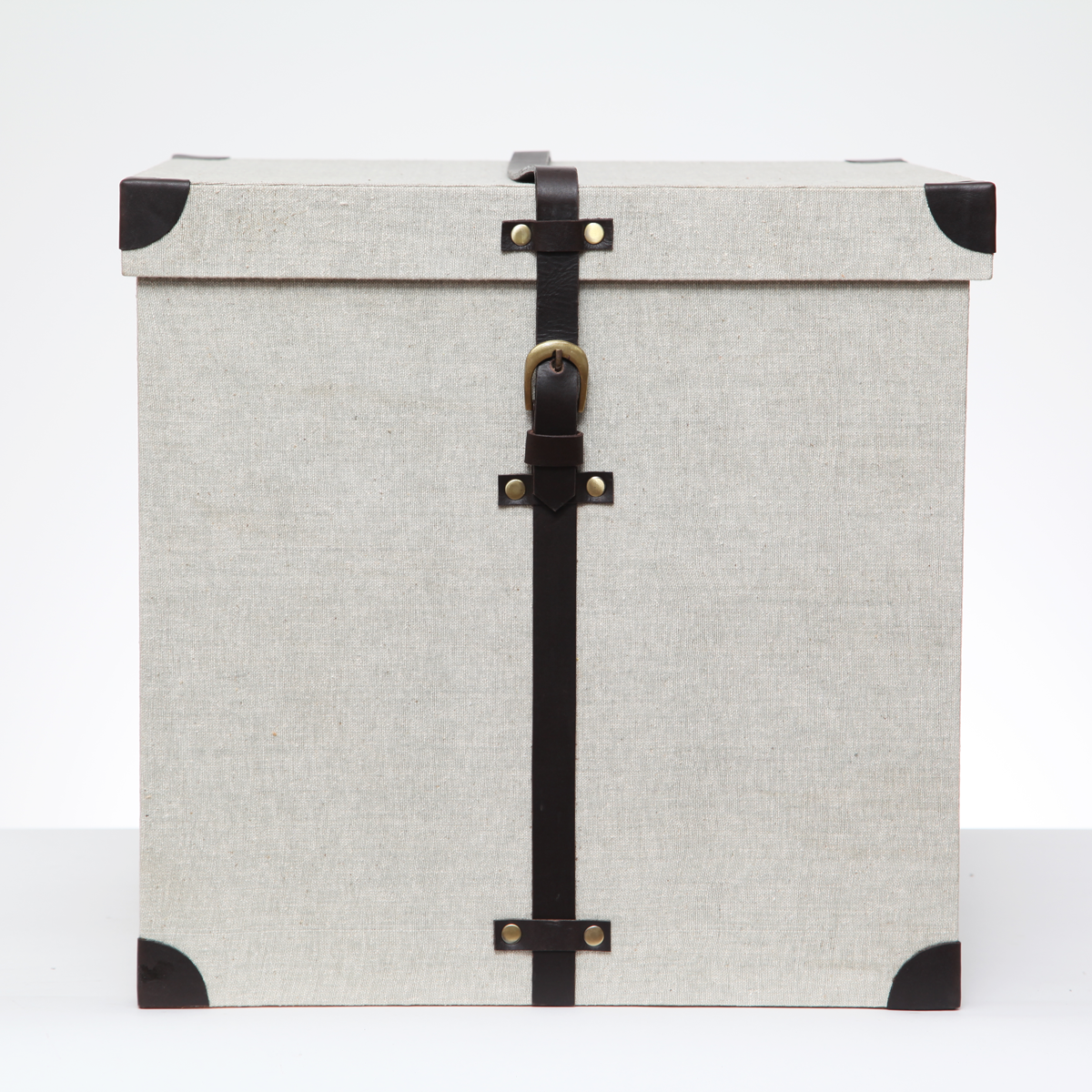 Genuine Leather, Cotton Canvas, Suede Fabric Lining, Water Resistant MDF Base and Antique Brass Metal Hardware