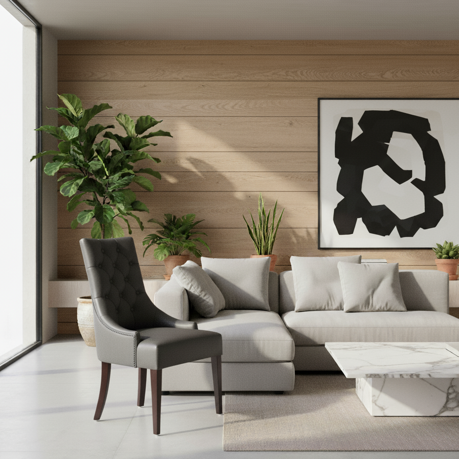 Leather, Kiln-dried hardwood solid frame, fine teak legs, high-density PU foam, poly fibre and antique brass metal nails
