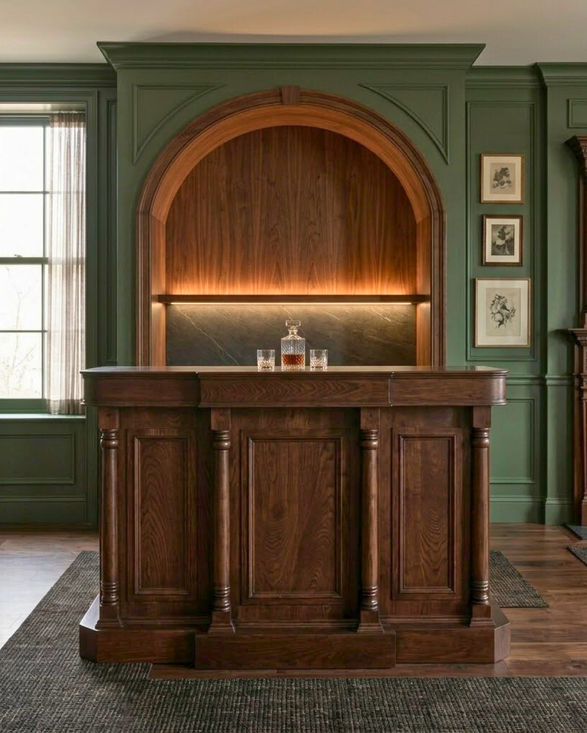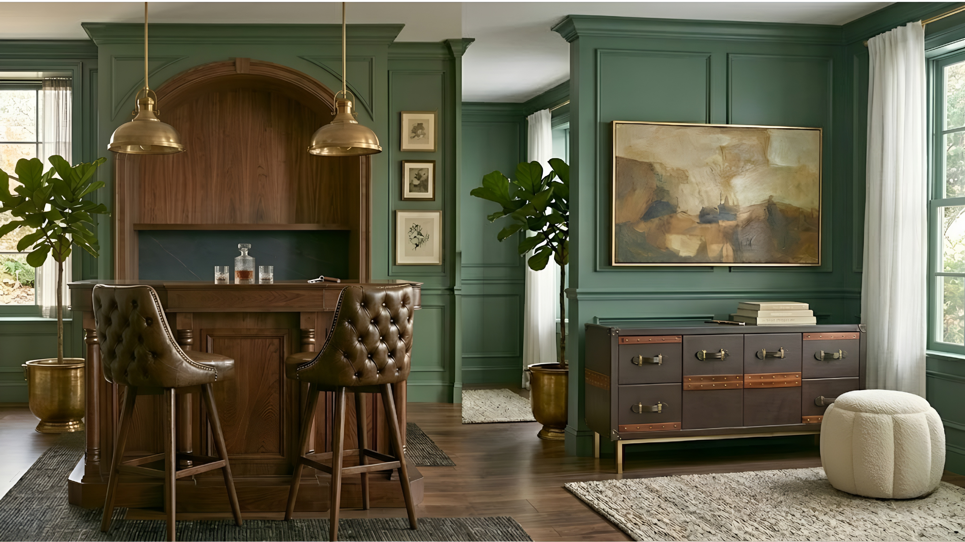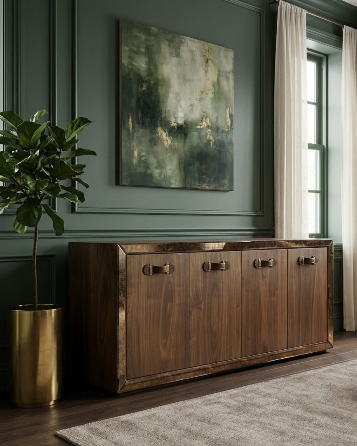 There’s an immediate sense of grounding the moment this collection enters a room. It doesn’t try to impress loudly, it settles in, almost instinctively, as if it has always belonged there. The atmosphere it creates is warm, composed, and quietly confident, where light falls softly on deep surfaces and textures reveal themselves over time. You can imagine it in a paneled living room, a study lined with books, or a bar corner that comes alive in the evening. There is a tactile richness to everything, the smoothness of leather, the weight of wood, that invites use rather than display. It’s a space that feels personal, collected, and enduring, where every piece adds to a story that continues to evolve.