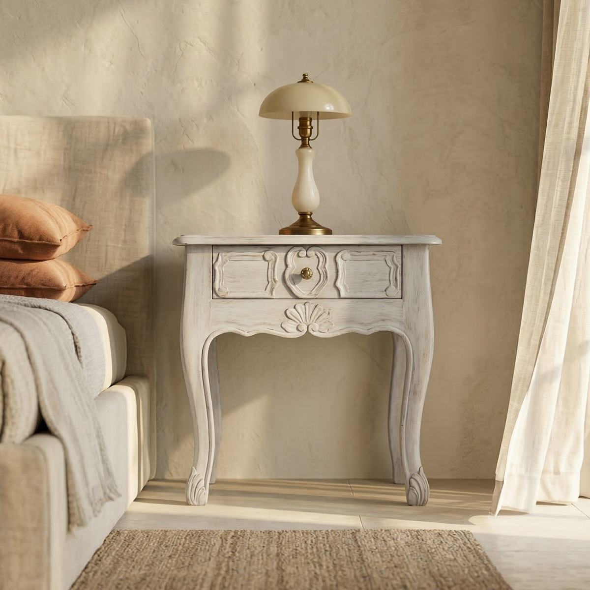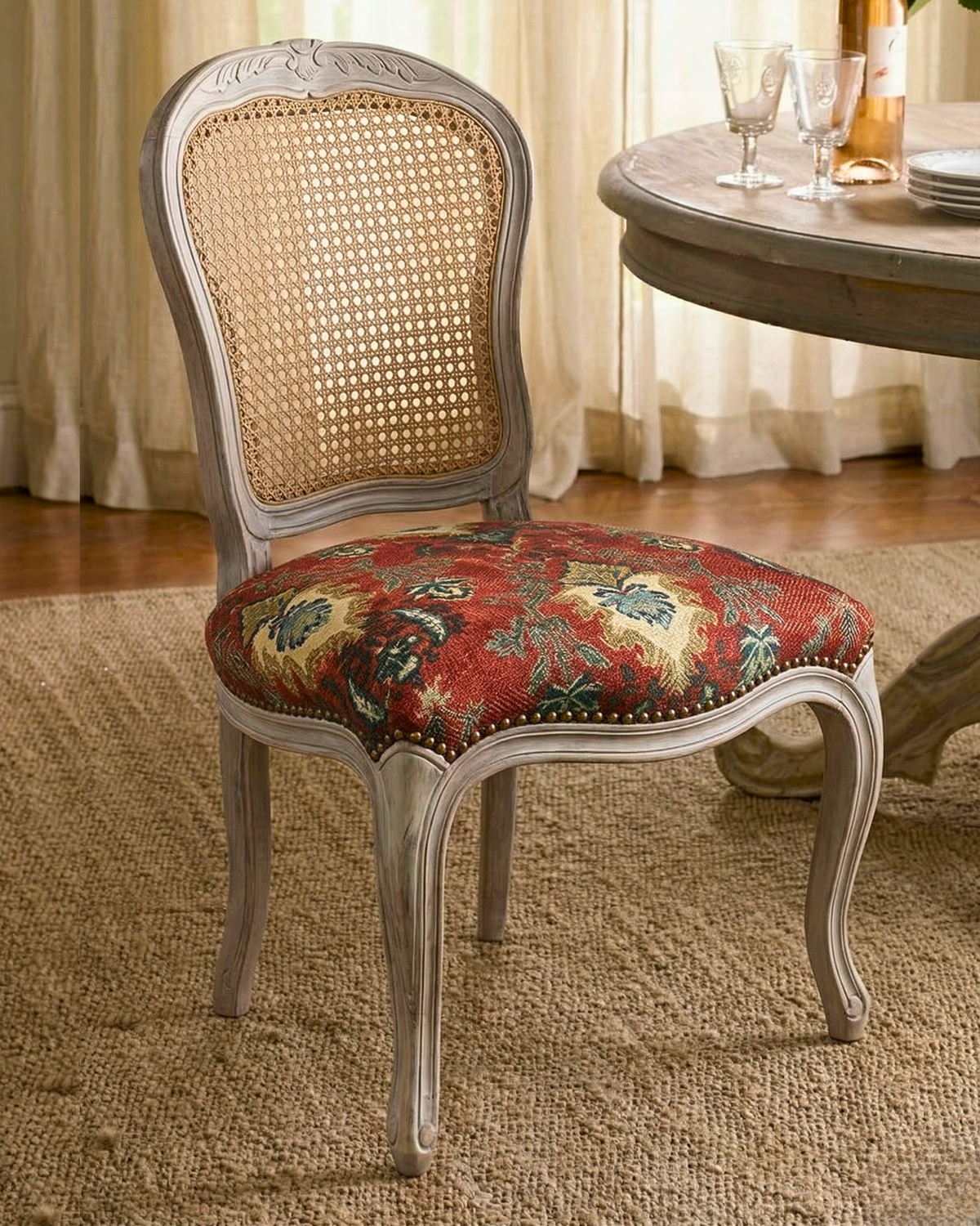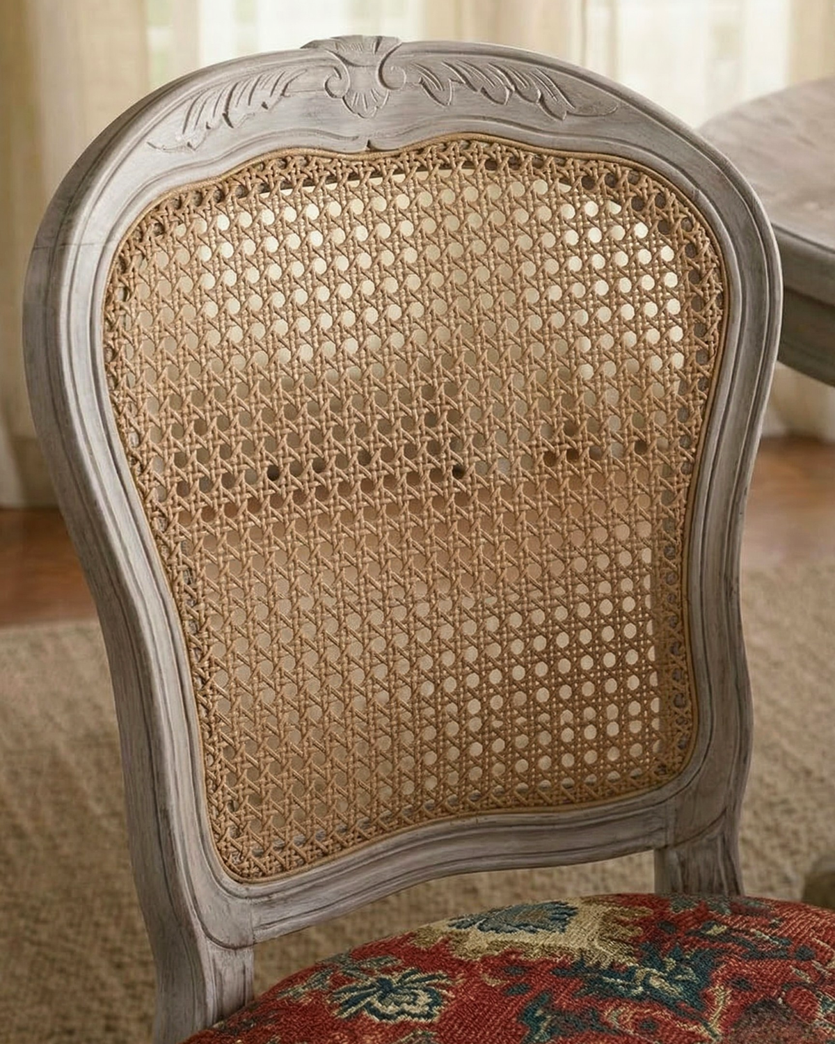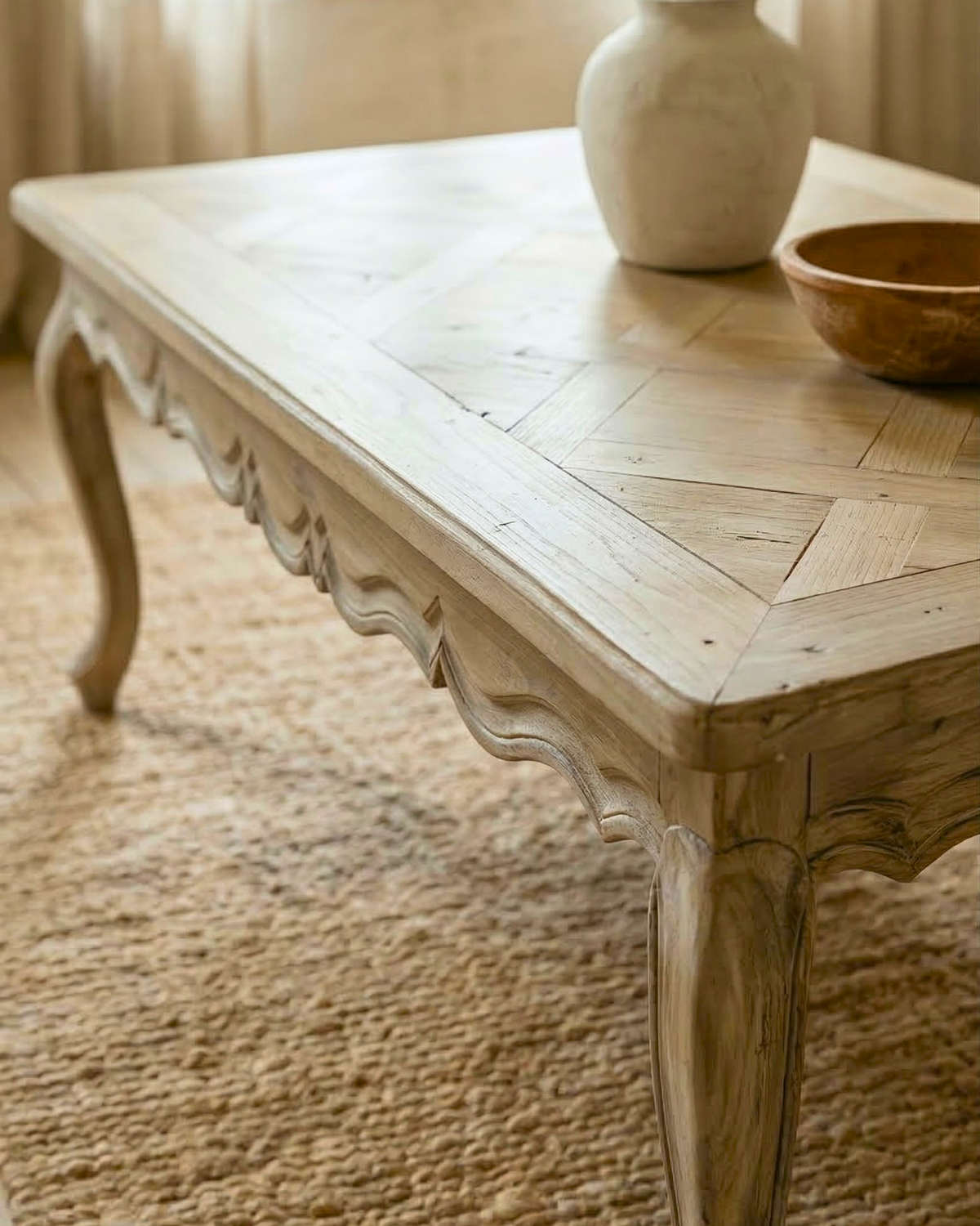 Rooted in classic French design, the collection is defined by its sculptural cabriole legs, gentle curves, and understated ornamentation. Crafted in limed oak, the wood carries a pale, chalky finish that highlights the grain while softening its richness. Handwoven cane introduces a light, breathable texture, contrasted with occasional upholstery in muted, faded tones. The palette remains restrained, warm neutrals, washed blush, and sandy hues, allowing the form and material to take precedence. Detailing is subtle yet deliberate, with carvings that feel integrated rather than applied. The result is a balance of structure and softness, where traditional craftsmanship is reinterpreted through a quieter, more contemporary lens.