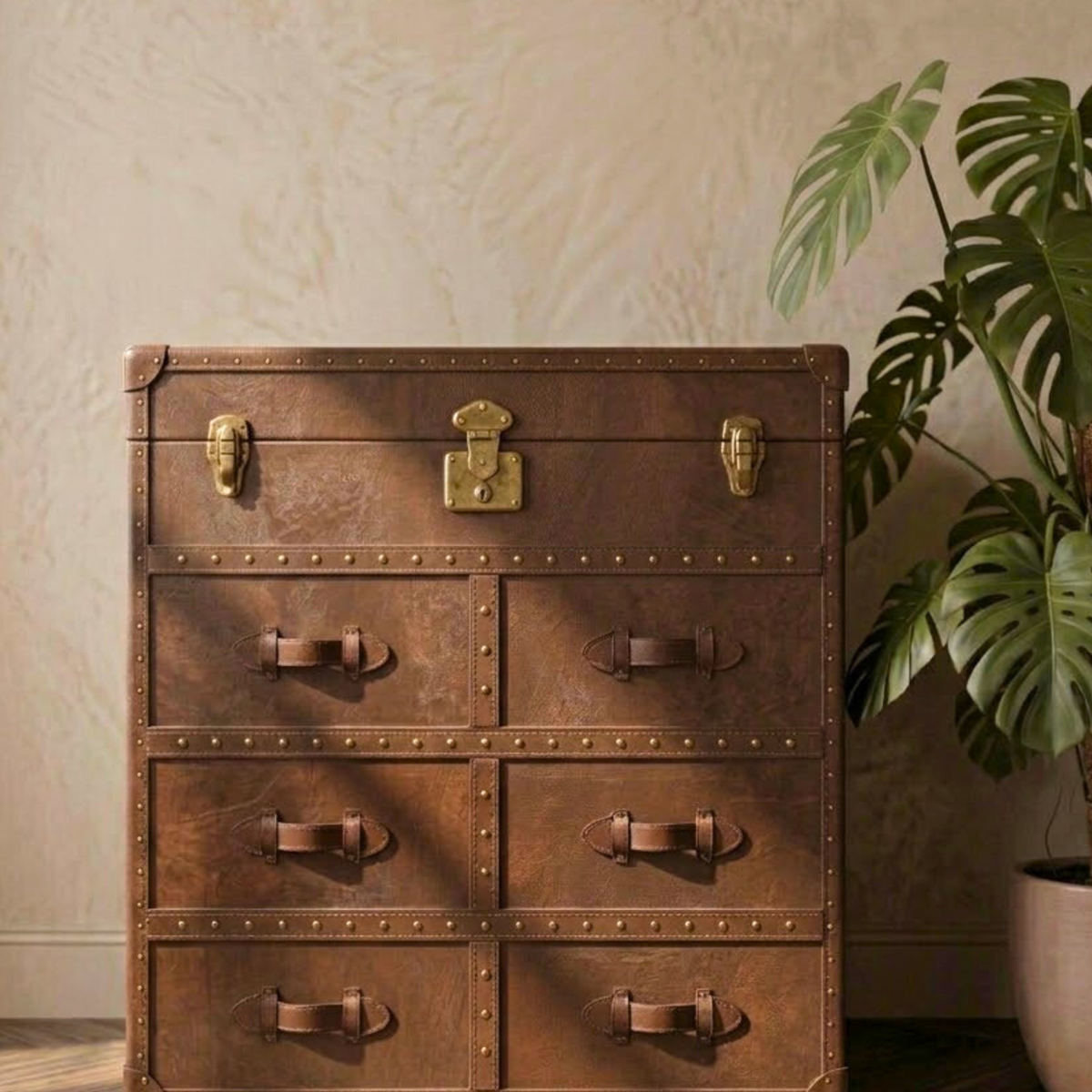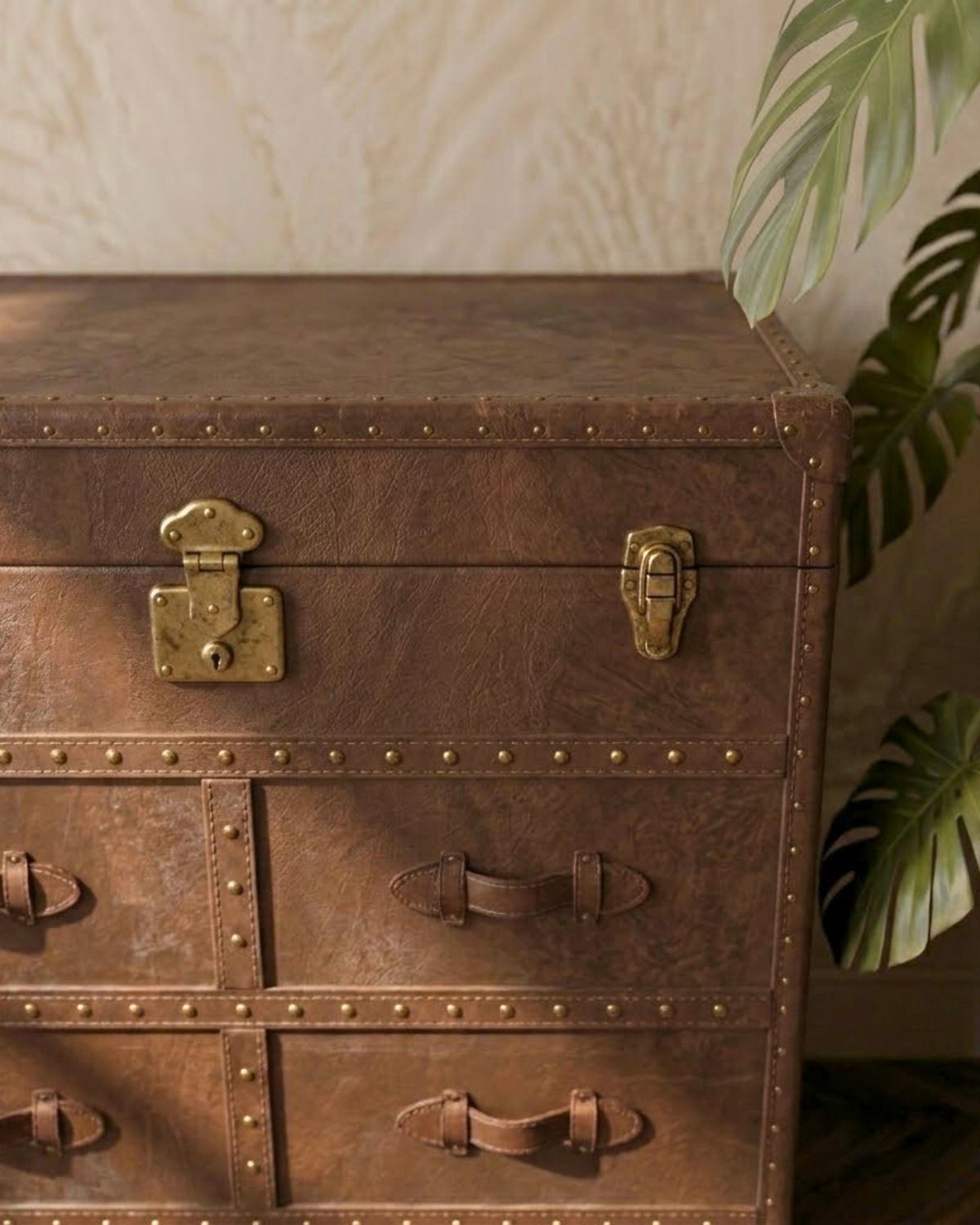 At its core, the collection is defined by material honesty and detail. Supple leathers in tones of tan, tobacco, and oxblood carry a natural depth, designed to develop character over time. Hand-set brass studs, visible stitching, and trunk-inspired elements bring a sense of craftsmanship to the forefront. The silhouettes balance weight and elegance, structured forms softened by curves and tailored finishes. Surfaces are kept rich but restrained, allowing textures to lead over ornamentation. The palette remains warm and composed, making it versatile yet distinctive, while every finish is chosen to age gracefully, enhancing rather than fading with use.