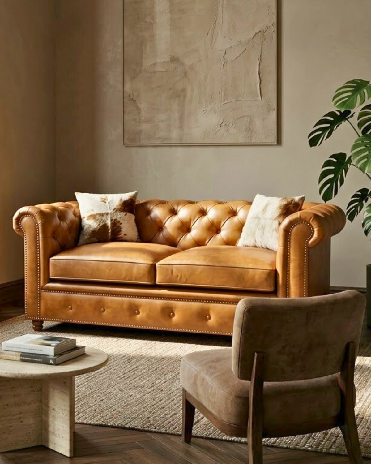 The Heritage Collection settles into a space with quiet confidence. It doesn’t seek attention, yet it naturally becomes the anchor of the room. There’s a certain stillness it brings, where light falls softly on worn leather, where shadows gather in the folds of deep tufting, and every surface invites touch. The atmosphere feels layered, almost lived-in, as if the pieces have always belonged there. It’s a balance of strength and ease, structured yet never rigid, refined but never distant. Whether placed in a sunlit corner or a more intimate setting, the collection creates a sense of grounding, turning the space into something more considered, more enduring.